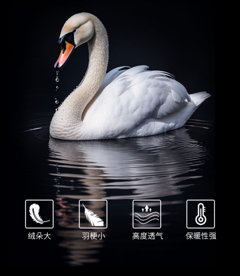 • 羽绒羽毛种类: 白鹅绒