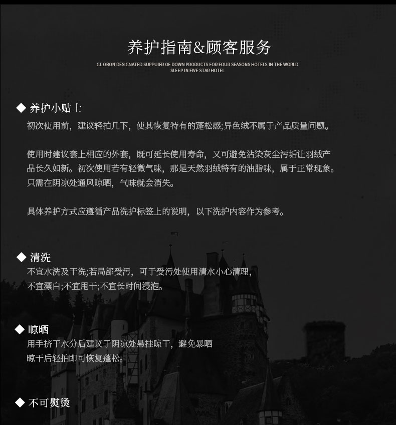 • 被子种类: 羽绒被