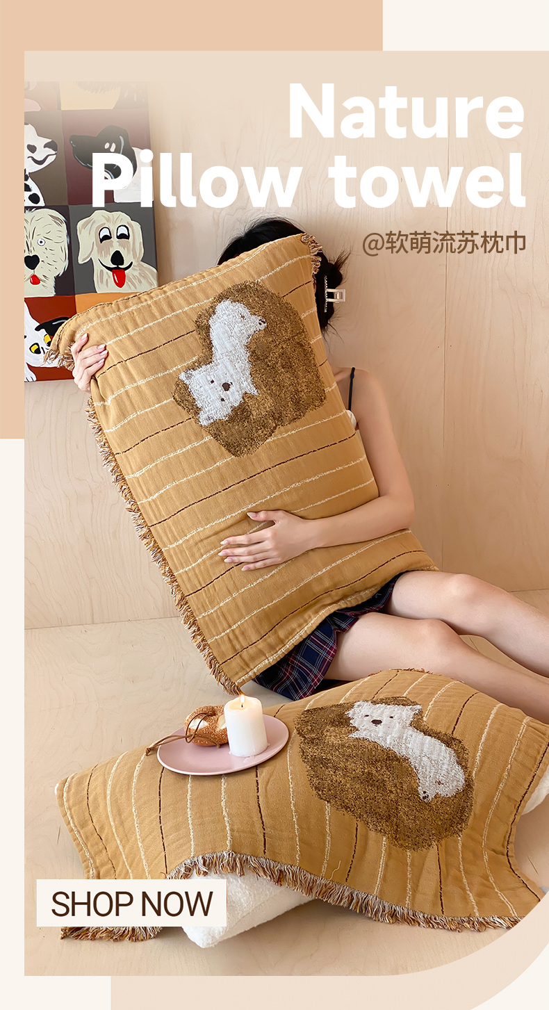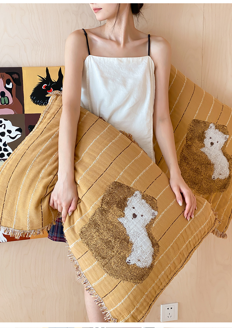商品名称:麻依 2025新款全棉四层纱布软萌流苏枕巾 沙发小狗