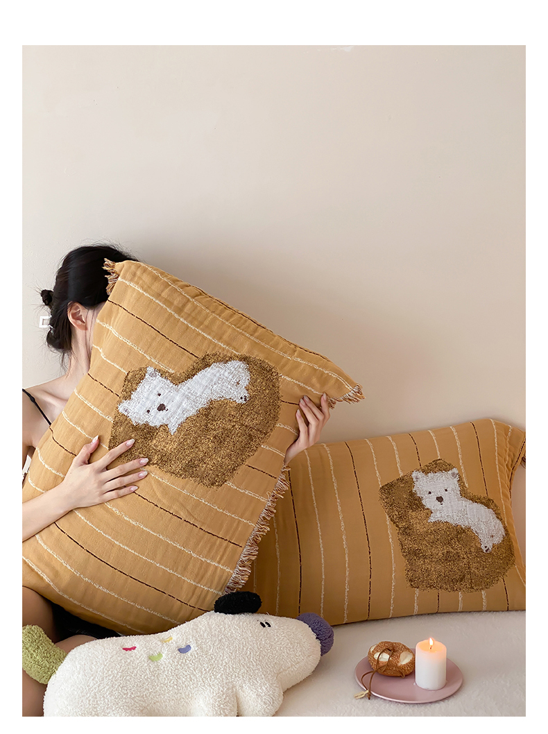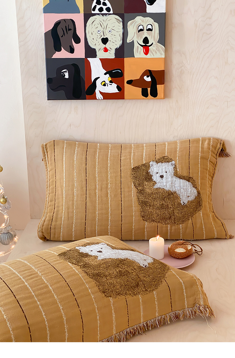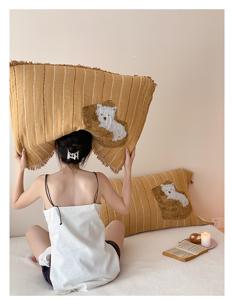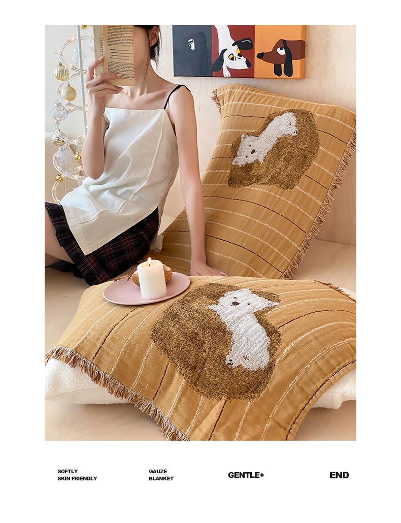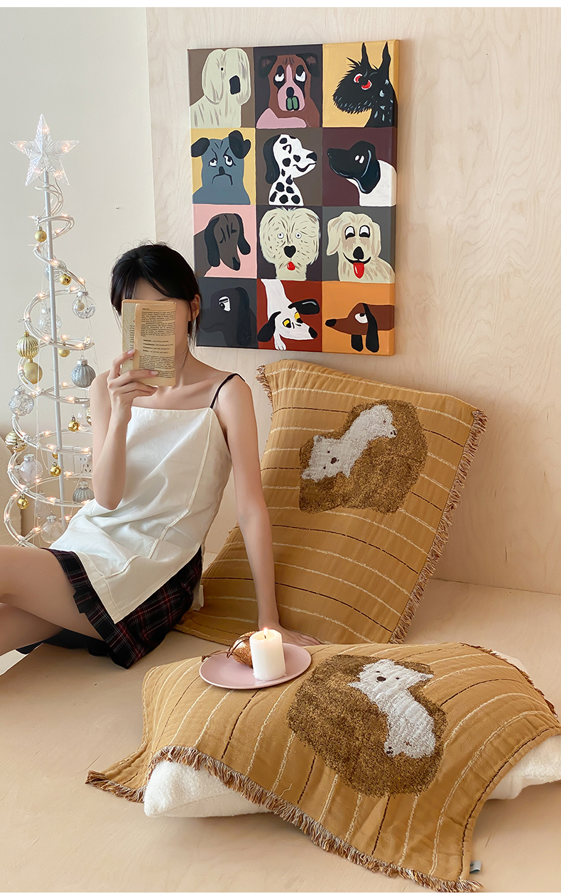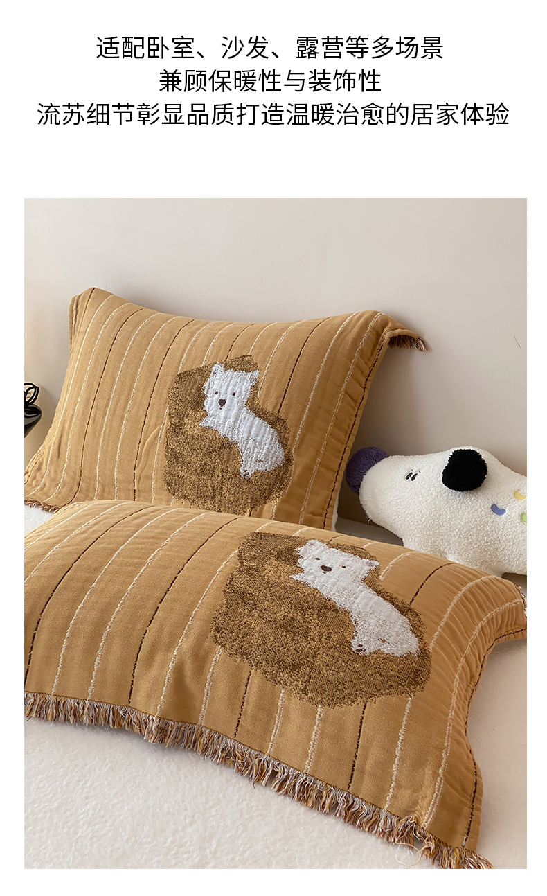 麻依 2025新款全棉四层纱布软萌流苏枕巾 沙发小狗