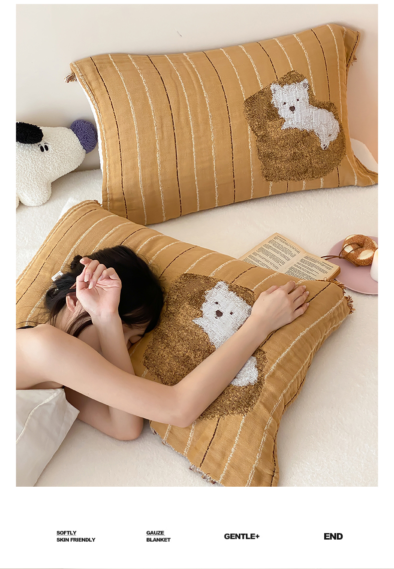 (总)麻依 2025新款棉花糖枕巾全棉四层纱布双层花边,抱抱熊,点点-灰,点点-米白,花影-粉,花影-米白,墨心,奶油草莓,帕帕熊,牵手小熊,生日腊肠狗,甜甜圈小熊,小蝴蝶结,小南瓜,小柿子,樱桃香
