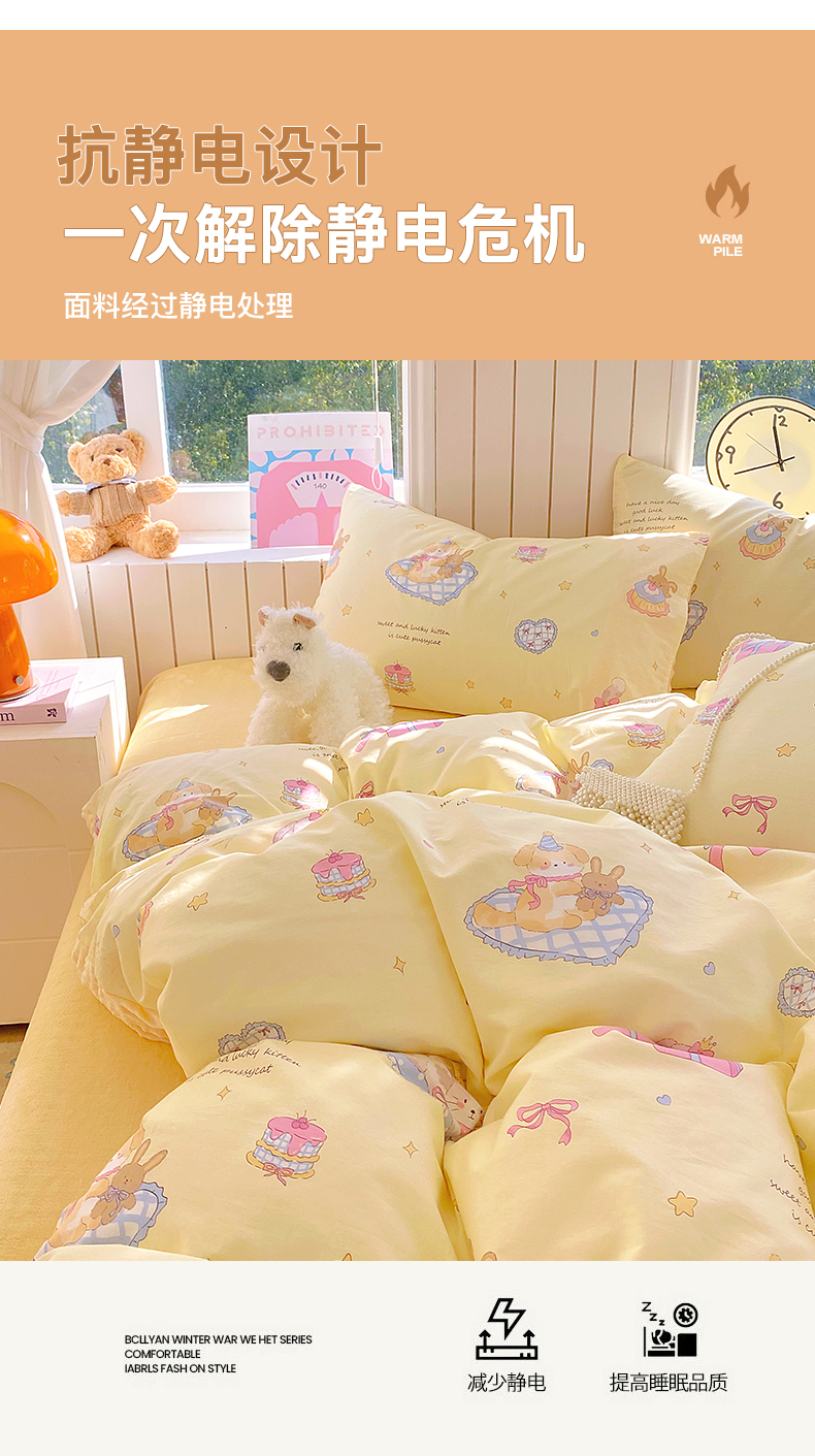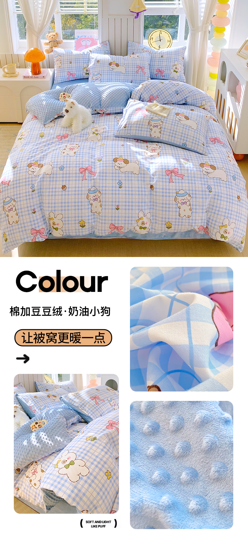 金鑫汇家纺 2025新款全棉豆豆绒系列单被套-棉加绒系列 棉加绒-荷枝桃桃