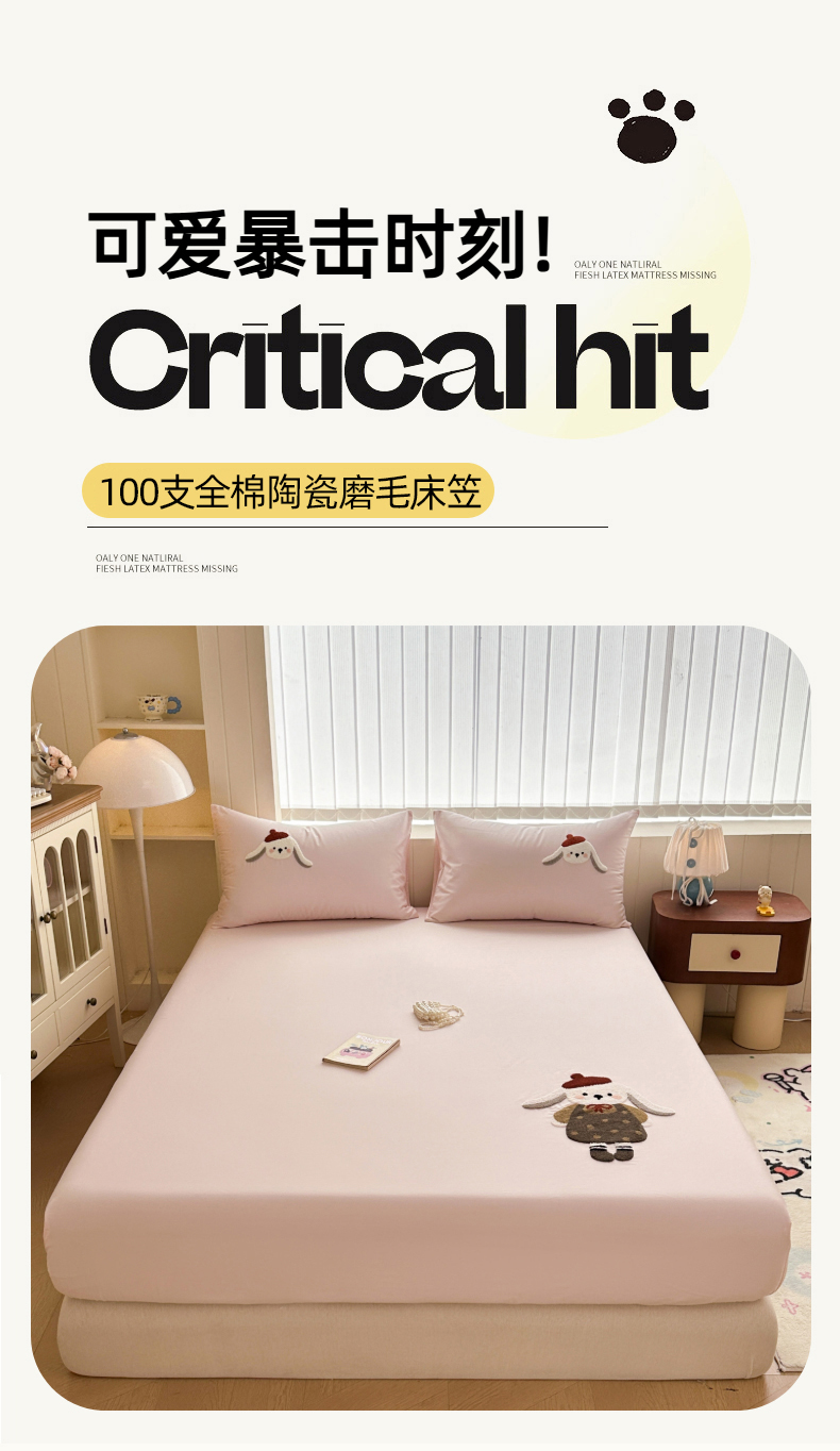 卡诗兰 2025新款100支全棉磨毛毛巾绣床笠三件套 萌萌猫