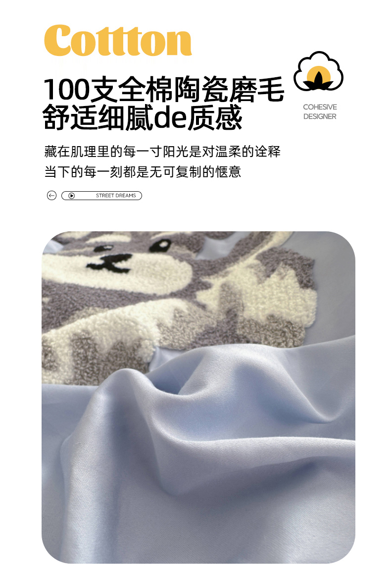 (总)卡诗兰 2025新款100支全棉磨毛毛巾绣床笠三件套,垂耳兔,蓝色修狗,萌萌猫,小象先生