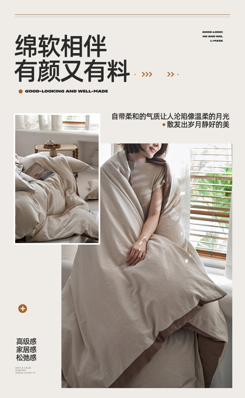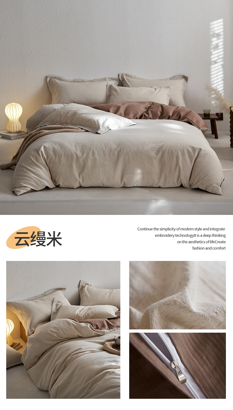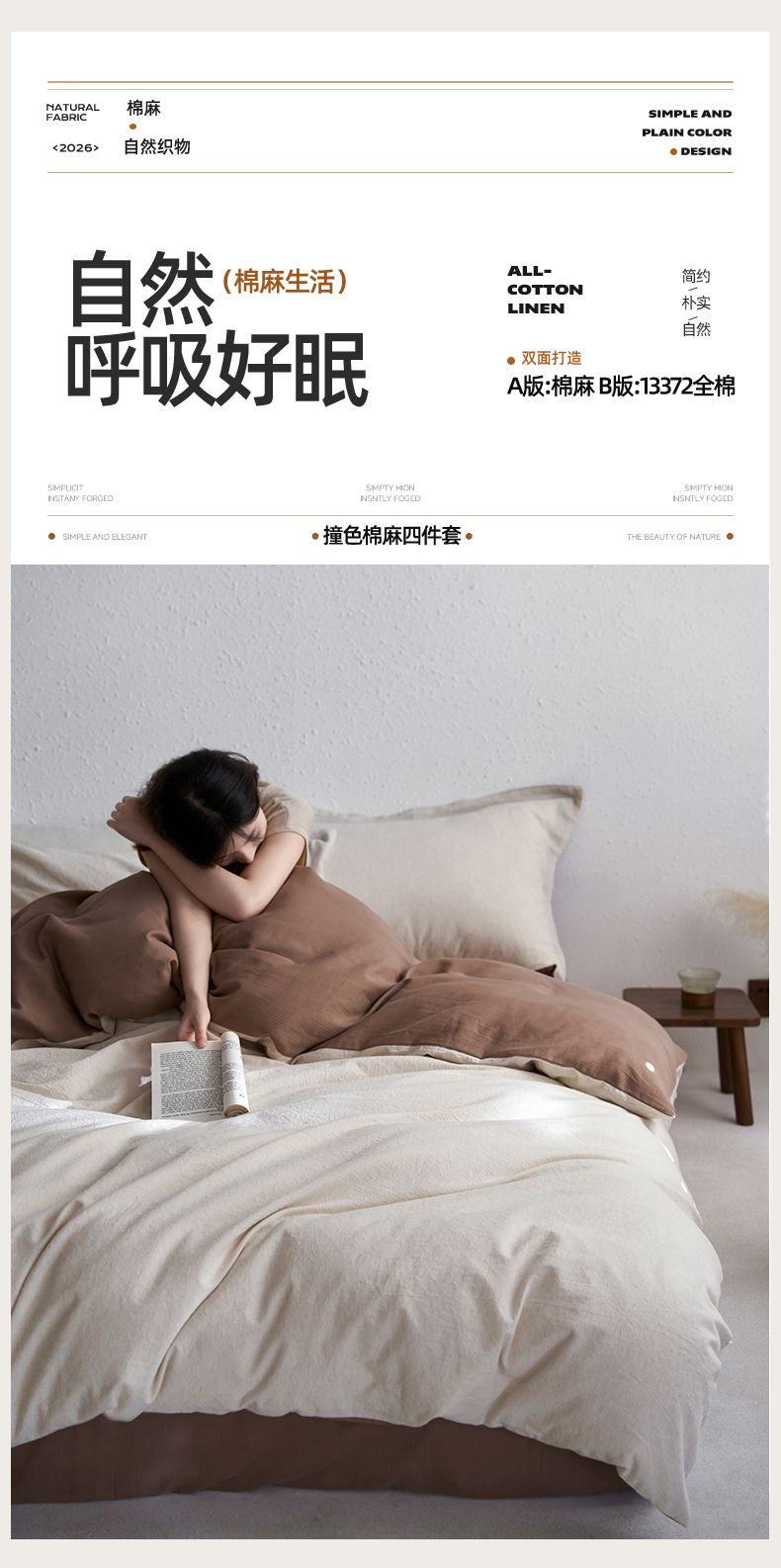 (总)笙意家纺 2025新款全棉A版棉麻B版13372四件套-云缦系列,云缦粉,云缦灰,云缦米