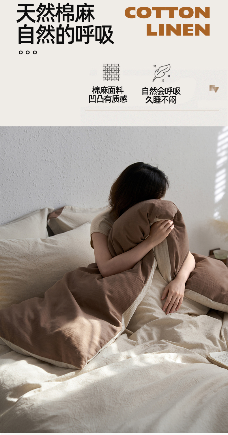 商品名称:笙意家纺 2025新款全棉A版棉麻B版13372四件套-云缦系列 云缦米