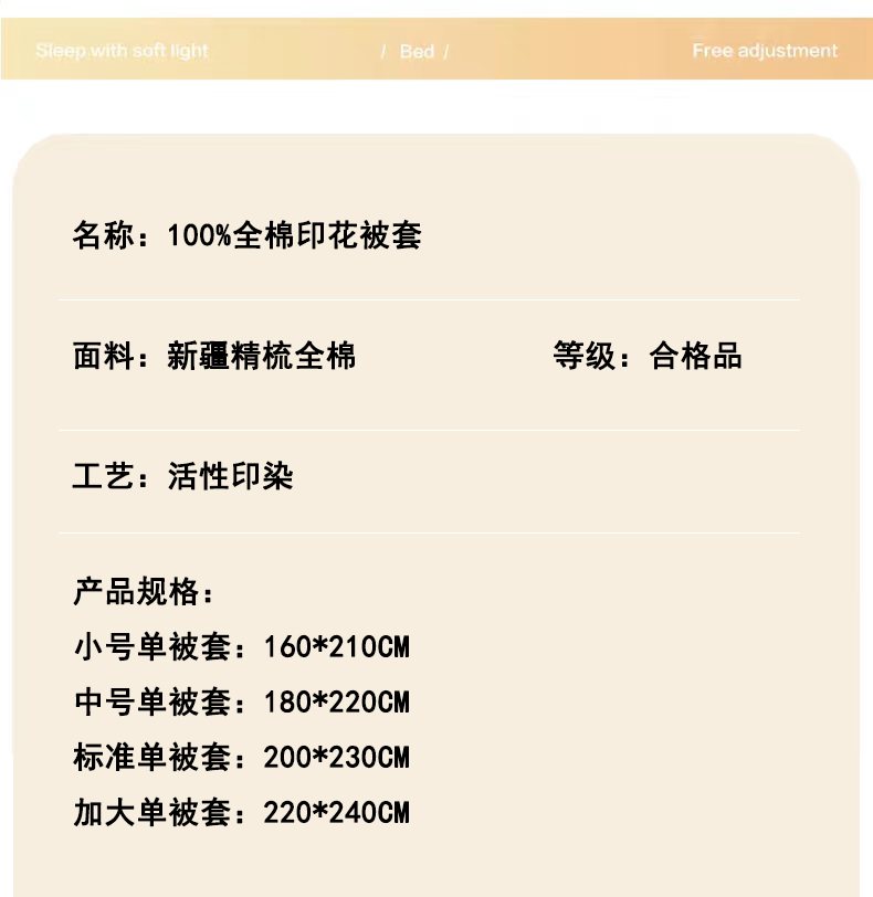 160*210cm单被套+一只枕套 | ¥49.00 |
