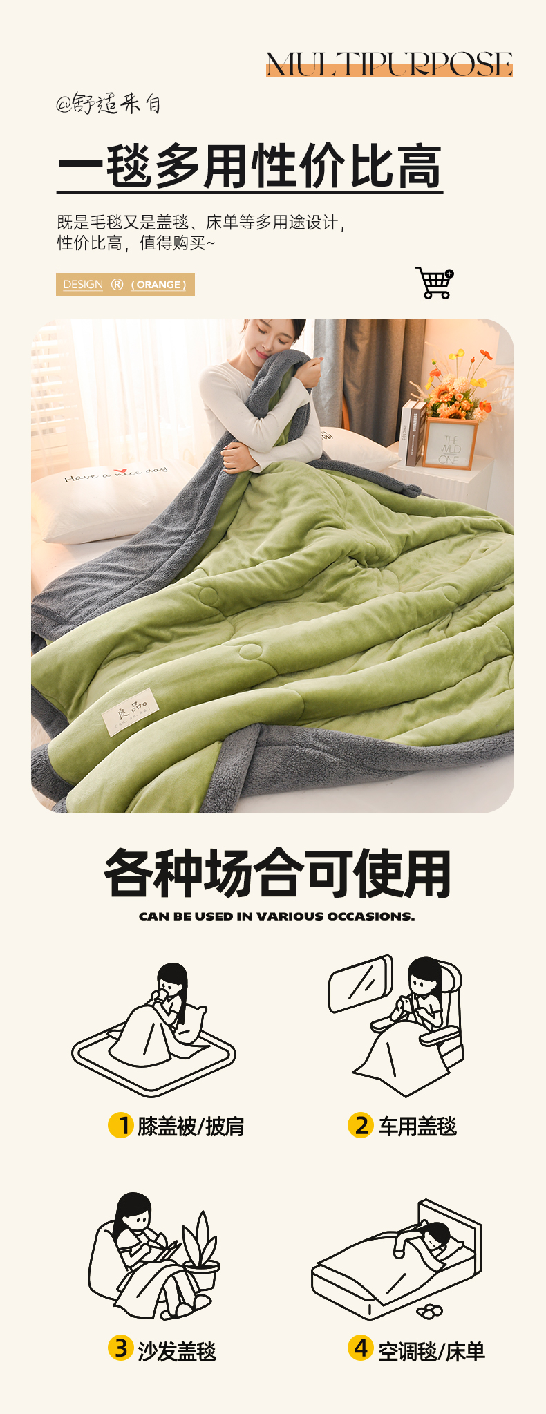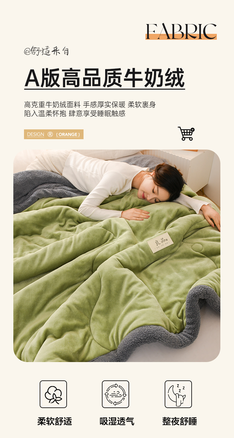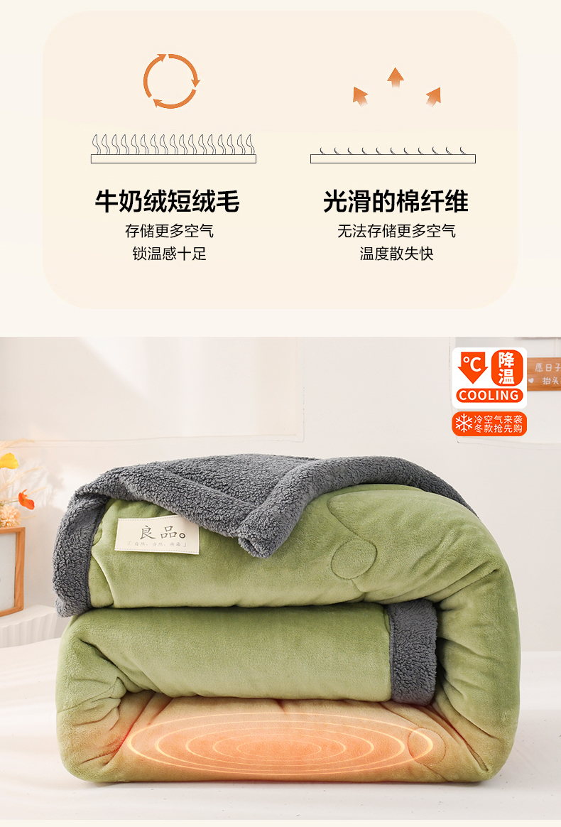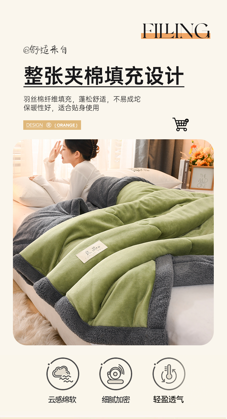 商品名称:恋绒家纺 2025新款三层牛奶绒夹棉毛毯复合盖毯直播外贸毯子 抹茶绿