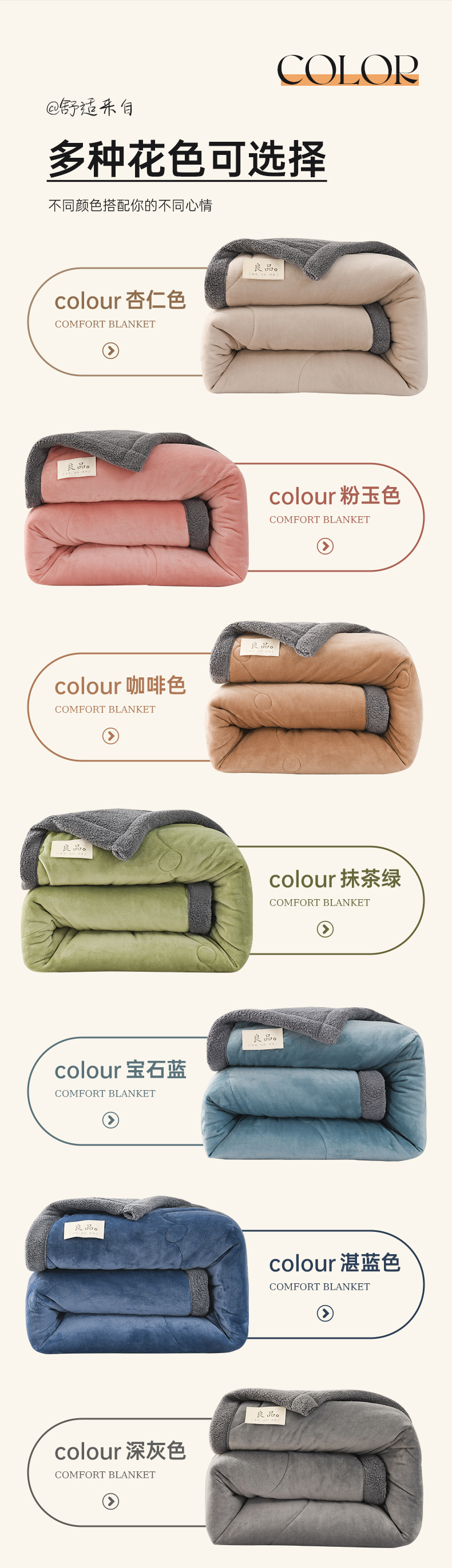 (总)恋绒家纺 2025新款三层牛奶绒夹棉毛毯复合盖毯直播外贸毯子,宝石蓝,粉玉色,咖啡色,抹茶绿,深灰色,杏仁色,湛蓝色