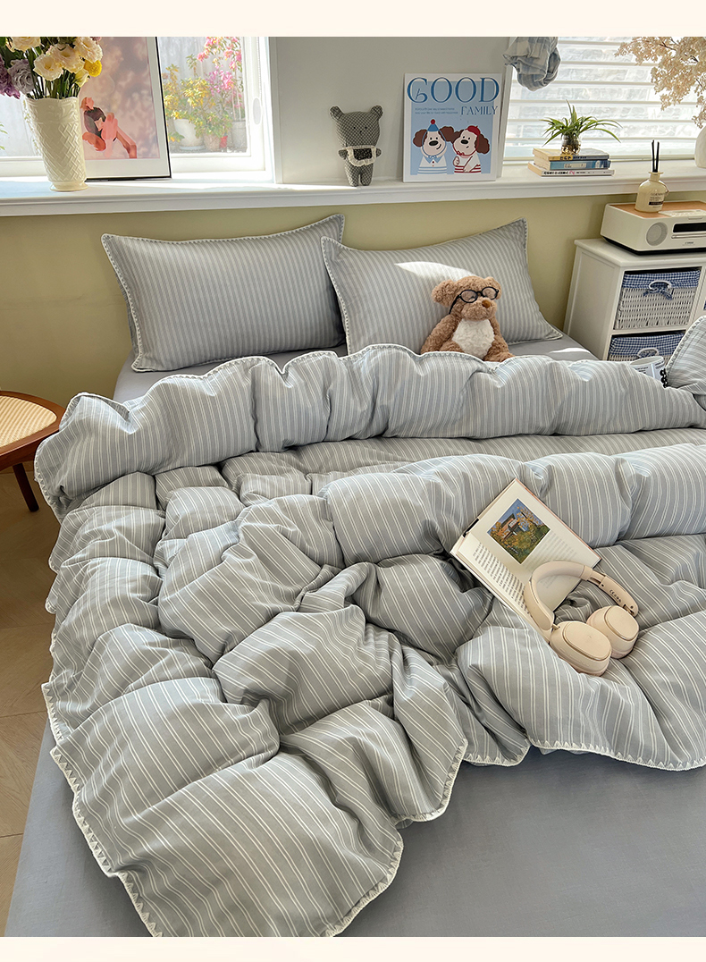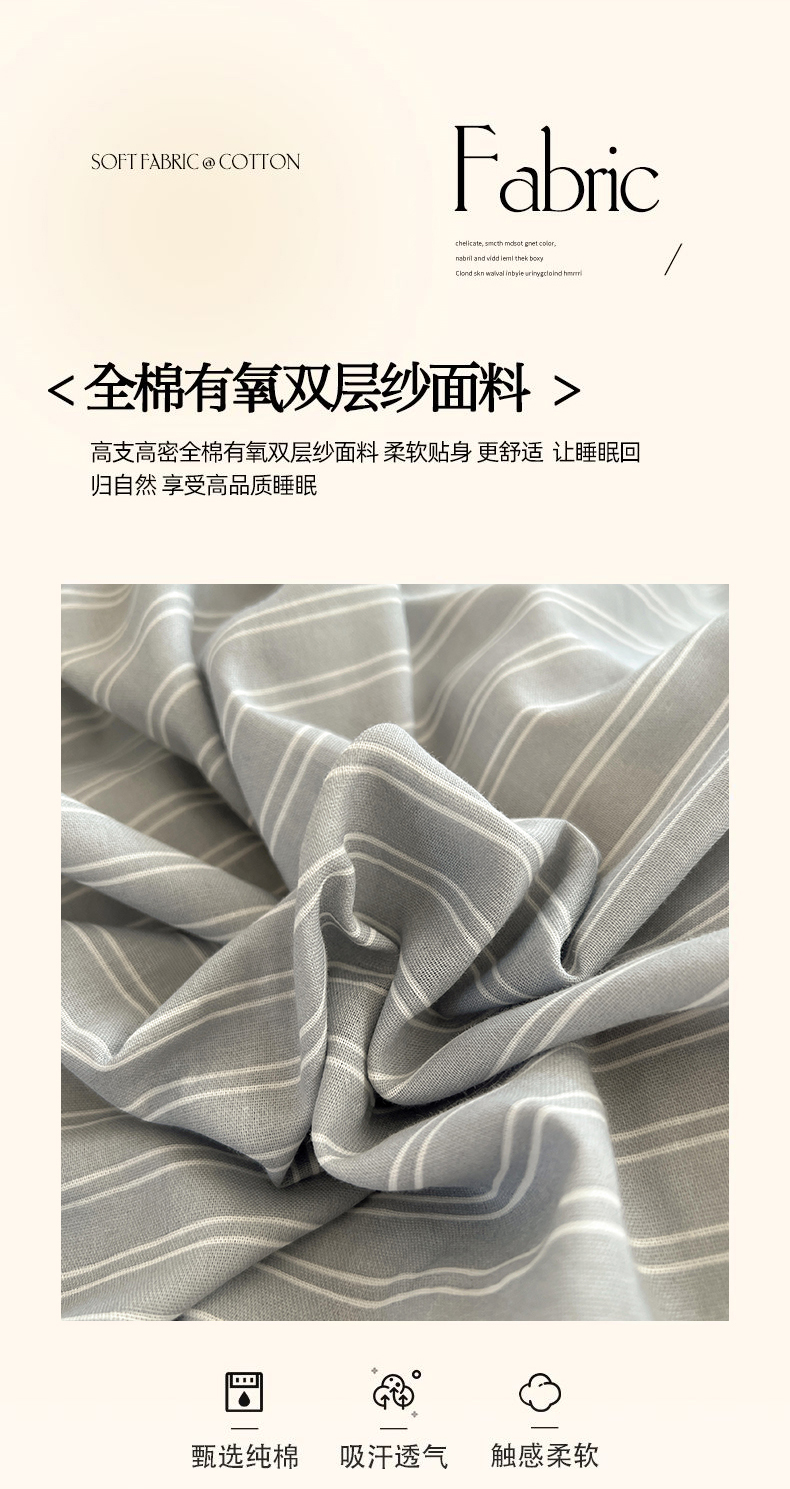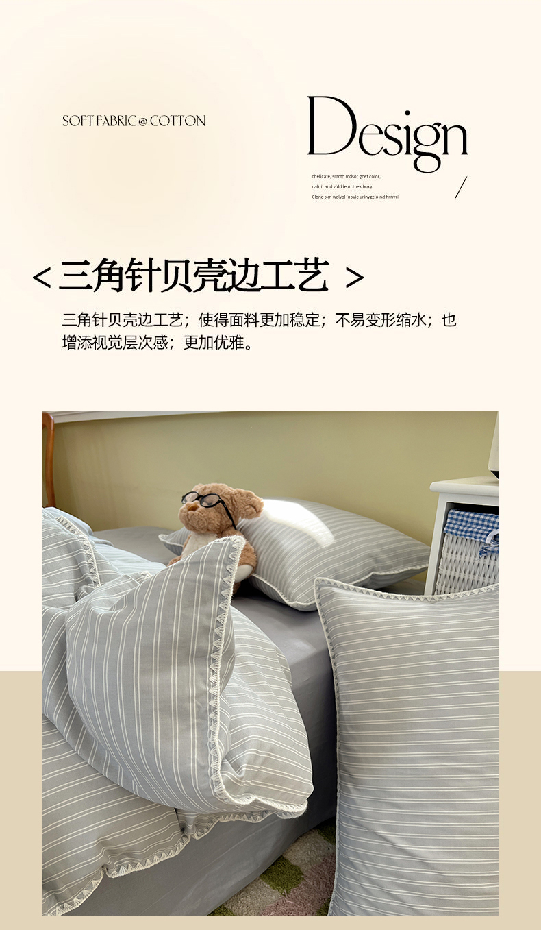 商品名称:典曼家纺 2026新款全棉纯棉有氧双层纱贝壳边四件套 贝壳边休闲条纹