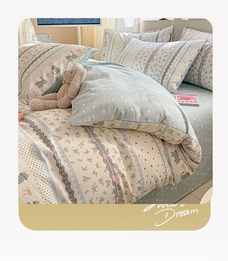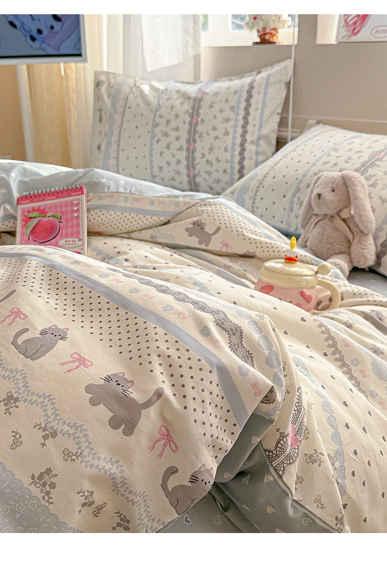 典曼家纺 2026新款全棉印花四件套-系列二 小猫时光兰