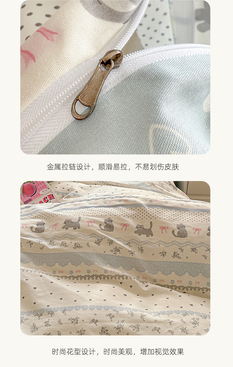 商品名称:典曼家纺 2026新款全棉印花四件套-系列二 小猫时光兰