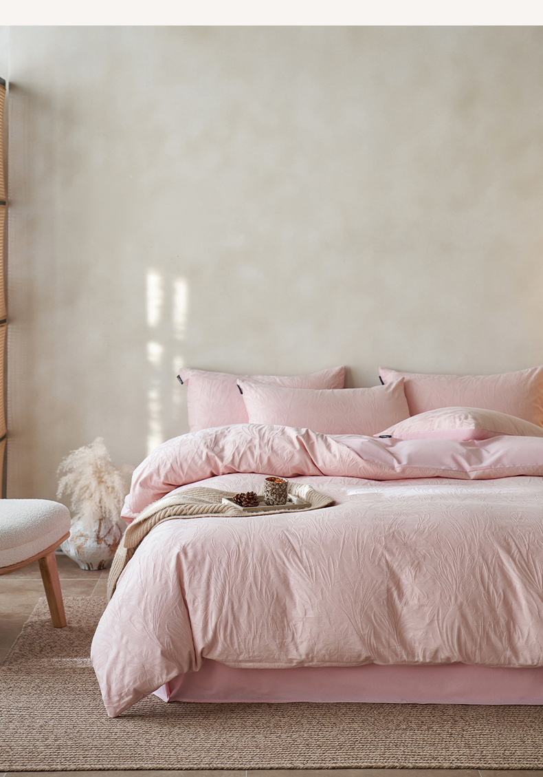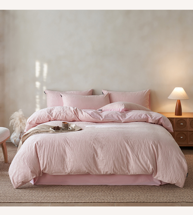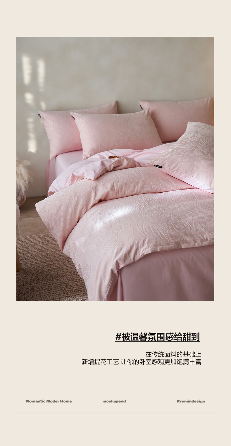 商品名称:小懒猪 2026新款亲肤舒适立体全棉提花四件套 秘境-唯美粉