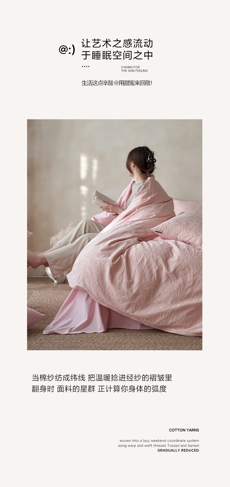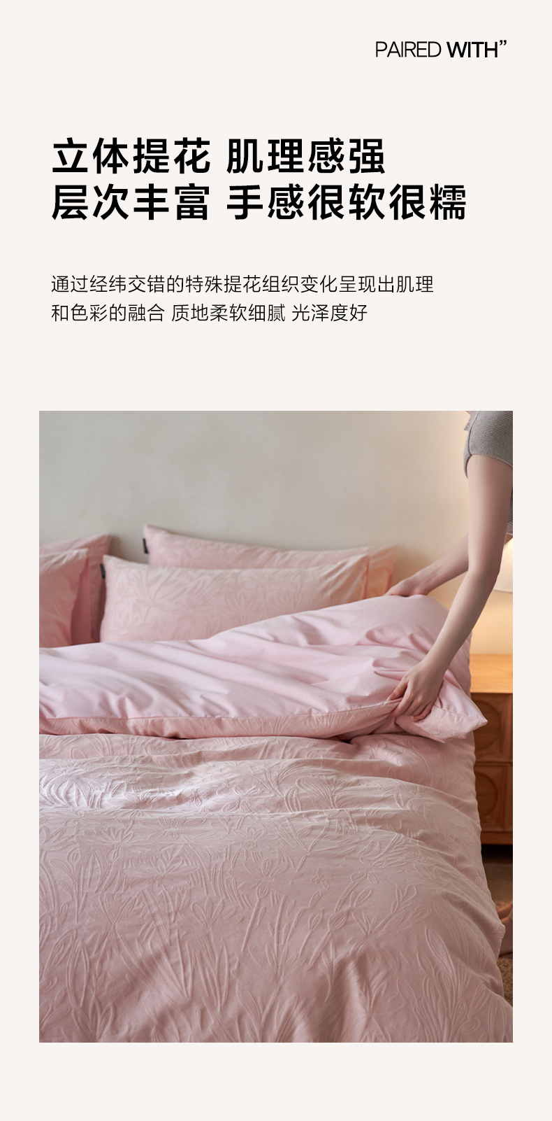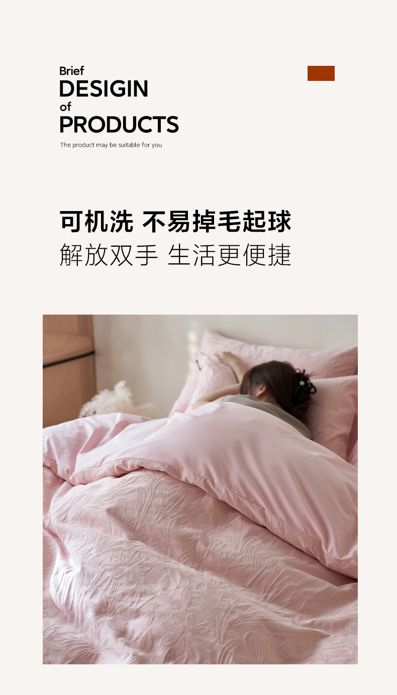 商品名称:小懒猪 2026新款亲肤舒适立体全棉提花四件套 秘境-唯美粉