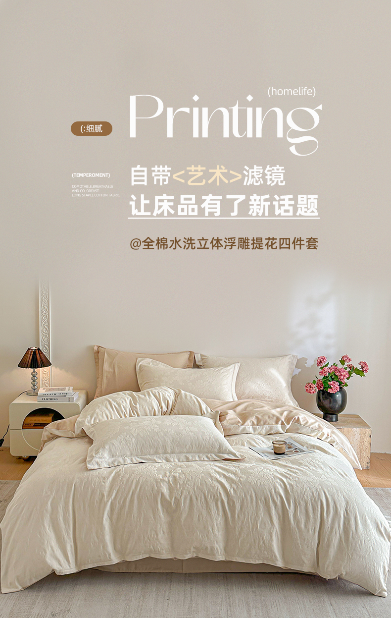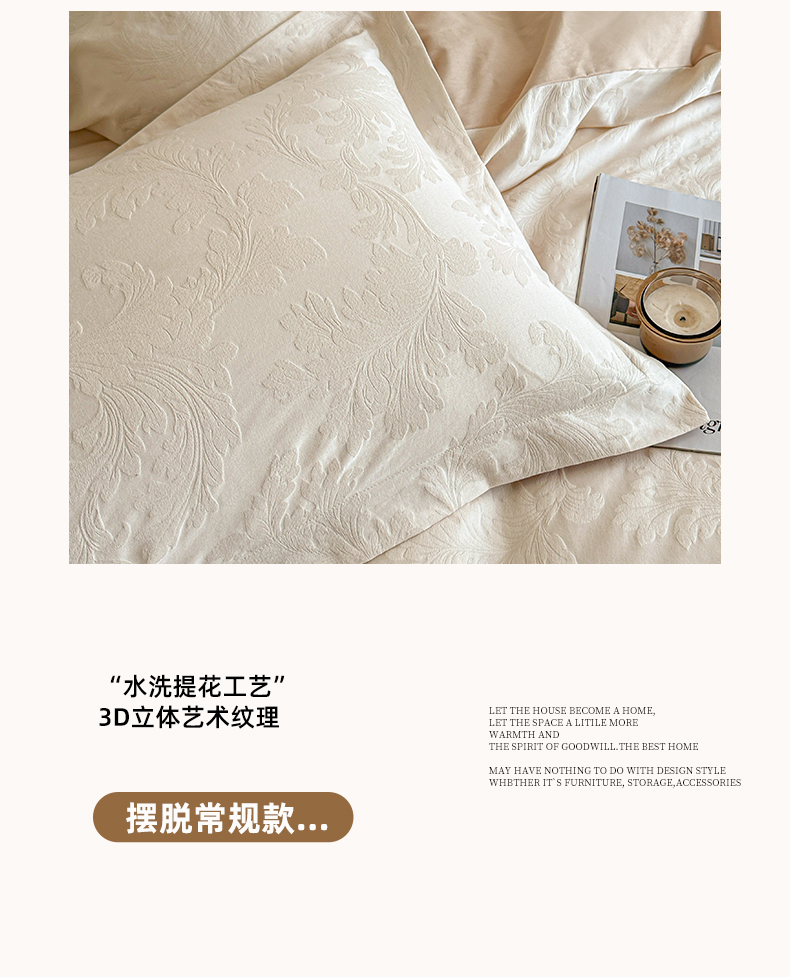 格里芬家纺 2026新款全棉水洗立体浮雕提花纯棉四件套 柔风香草-奶昔白