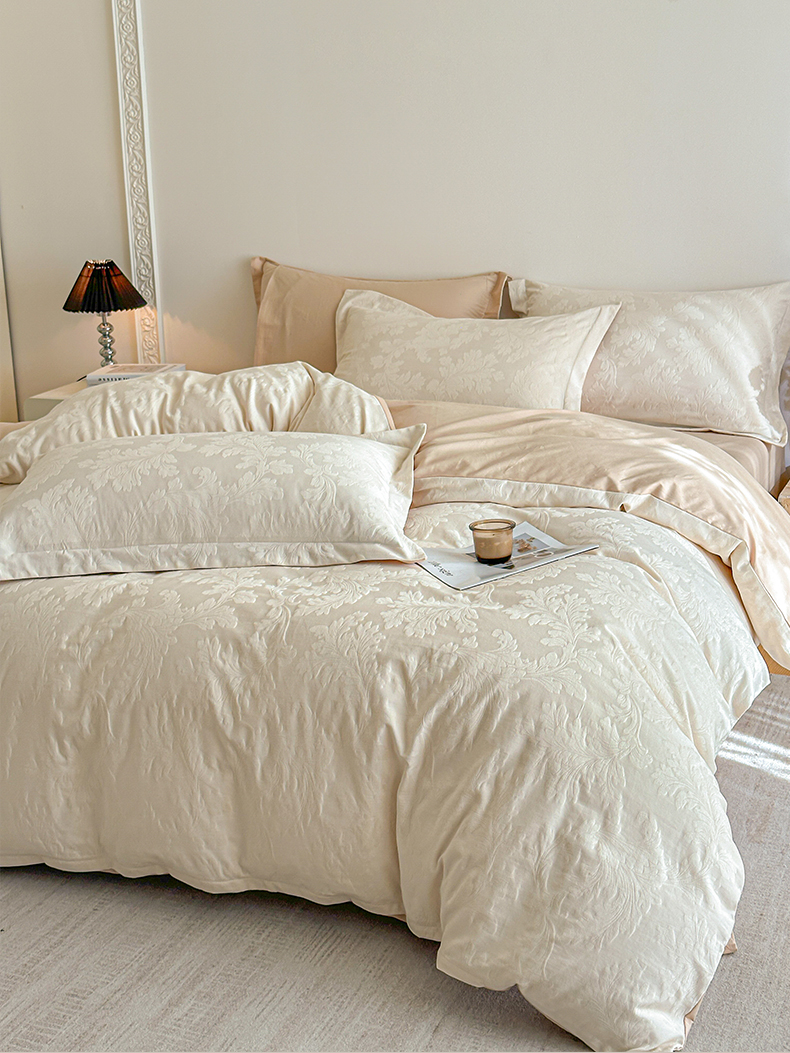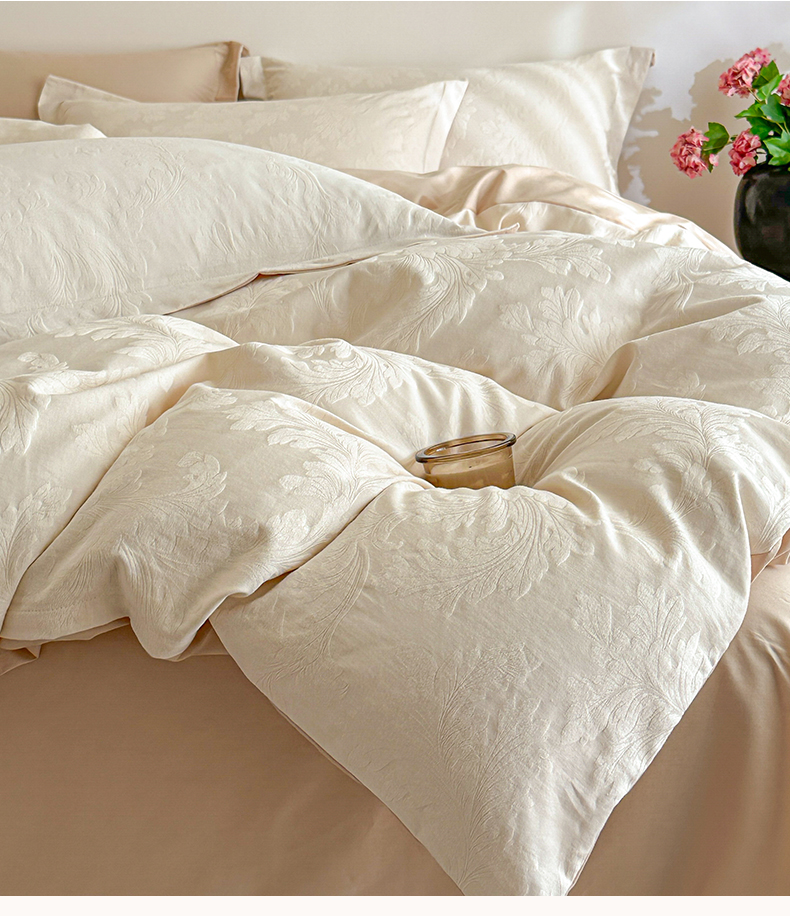 商品名称:格里芬家纺 2026新款全棉水洗立体浮雕提花纯棉四件套 柔风香草-奶昔白