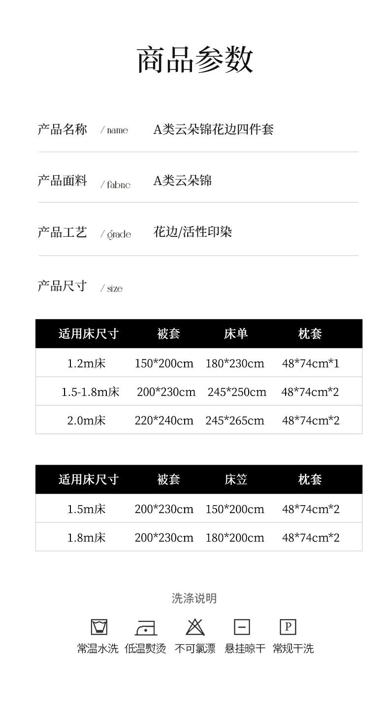 【床笠款】1.5四件套-被套200x230 | ¥75.00 |
