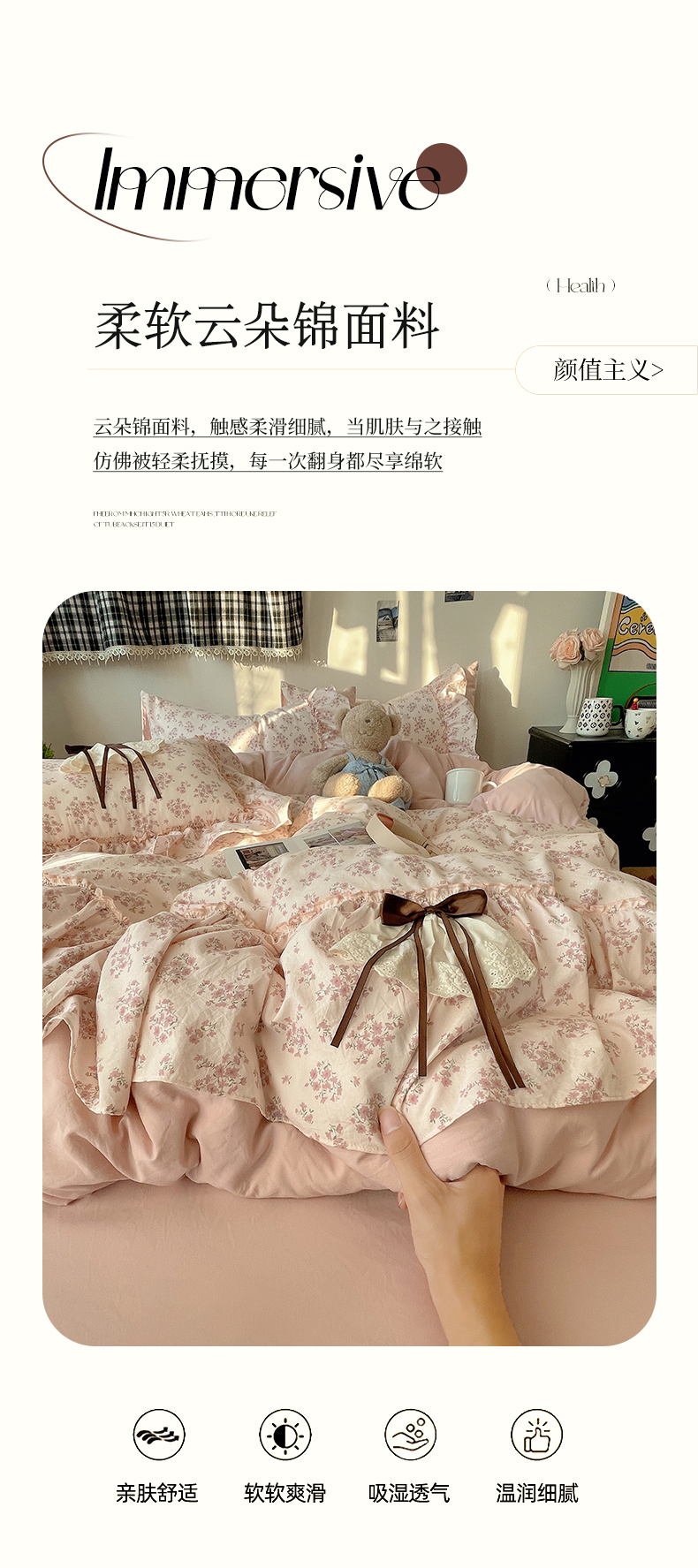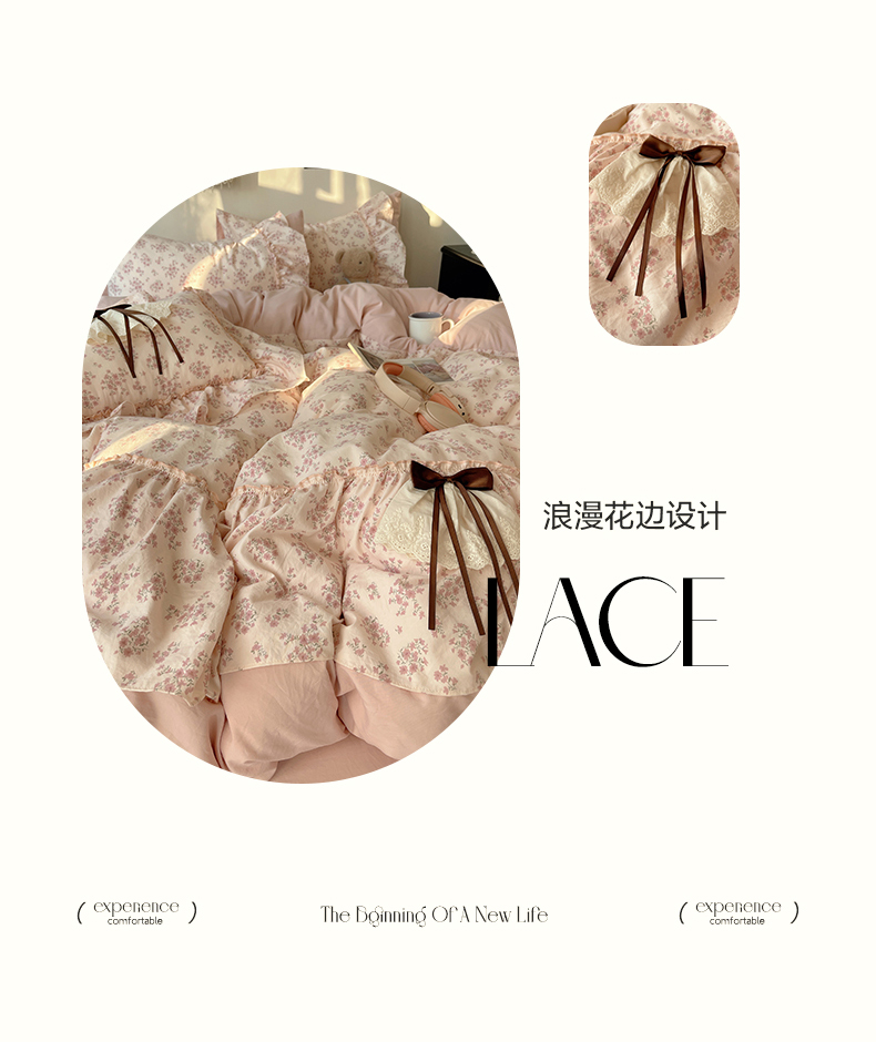 当前位置: 91家纺网 > 商品网购 > 床品套件 > 四件套 > 其它四件套 > 娜娜 2026新款A类云朵锦花边四件套 樱花粉