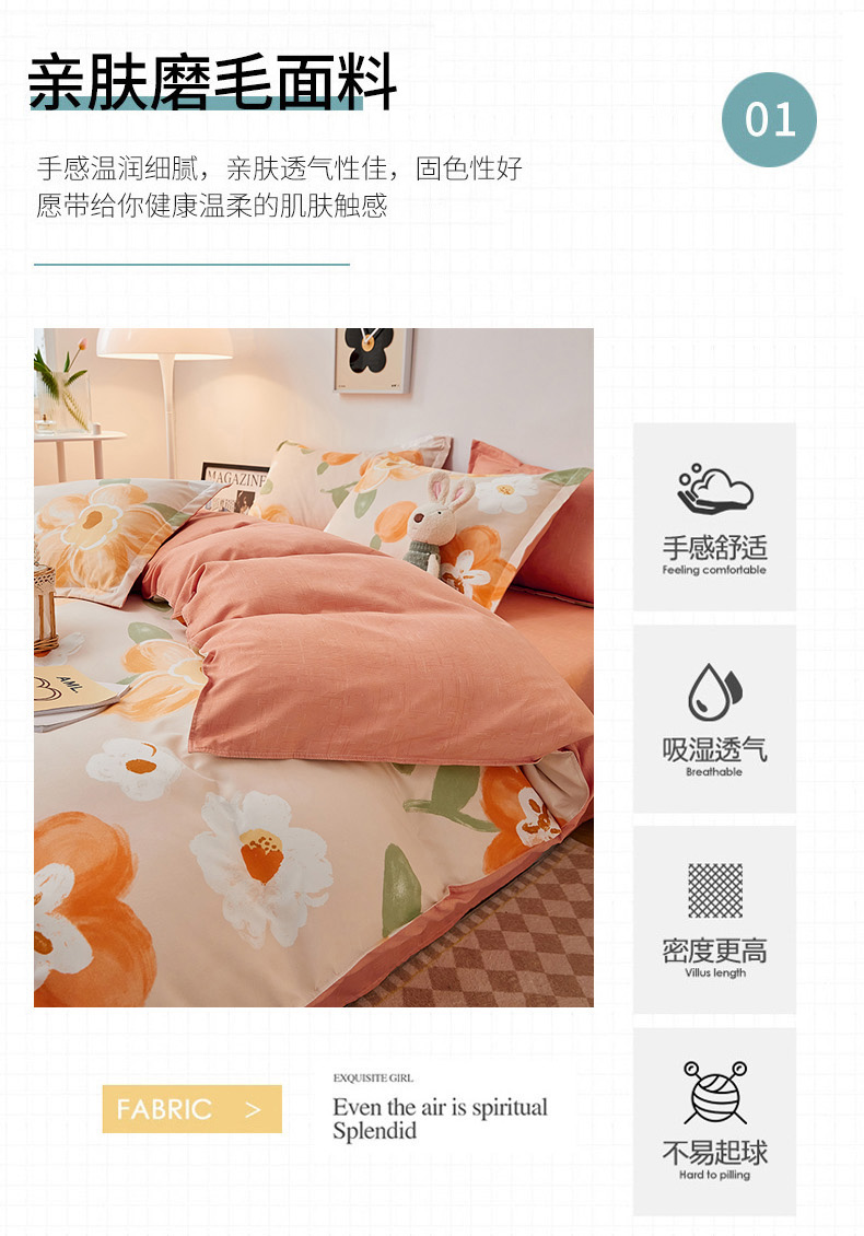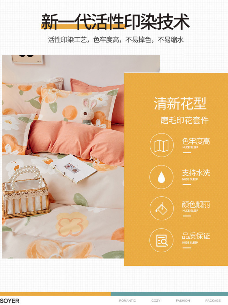 商品名称:世爵 2026新款亲肤磨毛印花四件套 暖阳花开