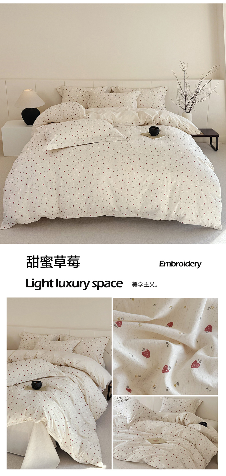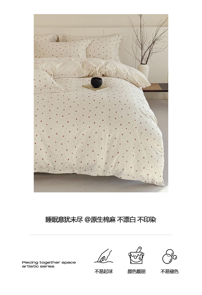 当前位置: 91家纺网 > 商品网购 > 床品套件 > 四件套 > 全棉普通四件套 > 锦罗绣 2026新款纯棉棉麻四件套 甜蜜草莓