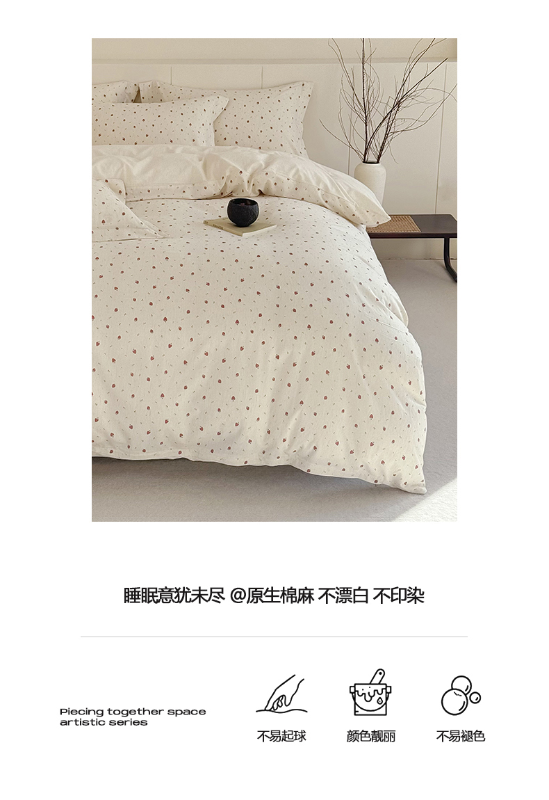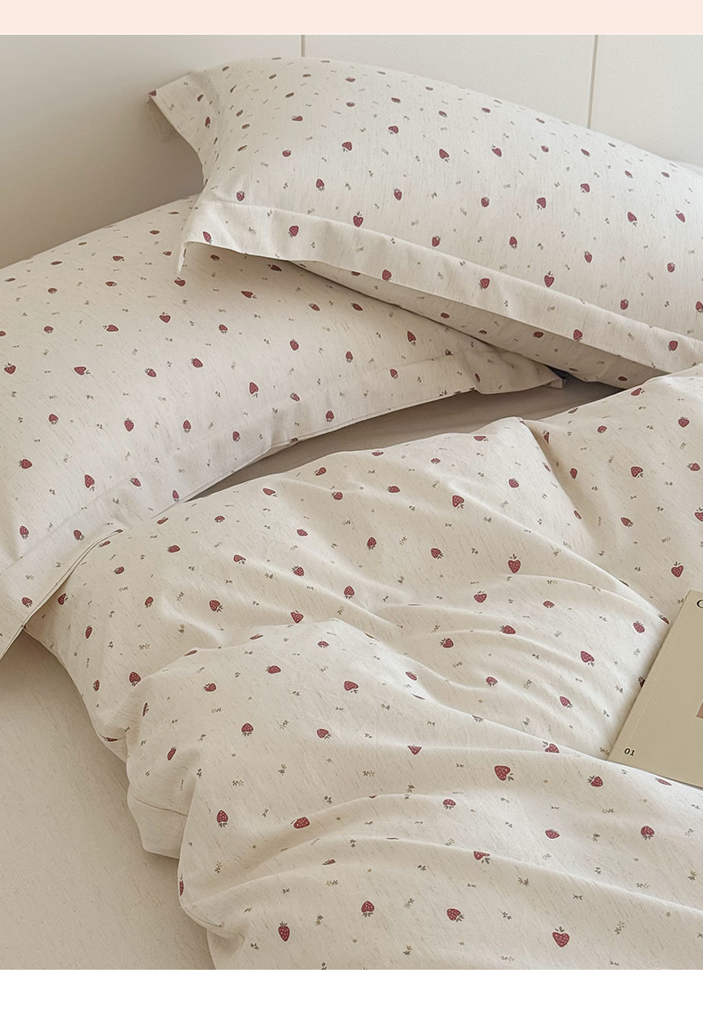锦罗绣 2026新款纯棉棉麻四件套-单被套 甜蜜草莓