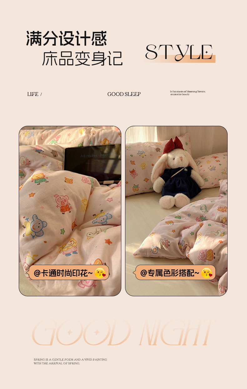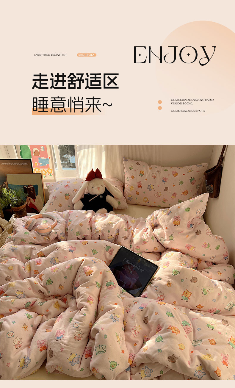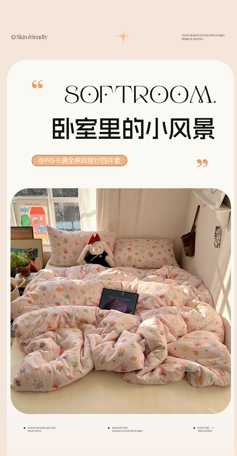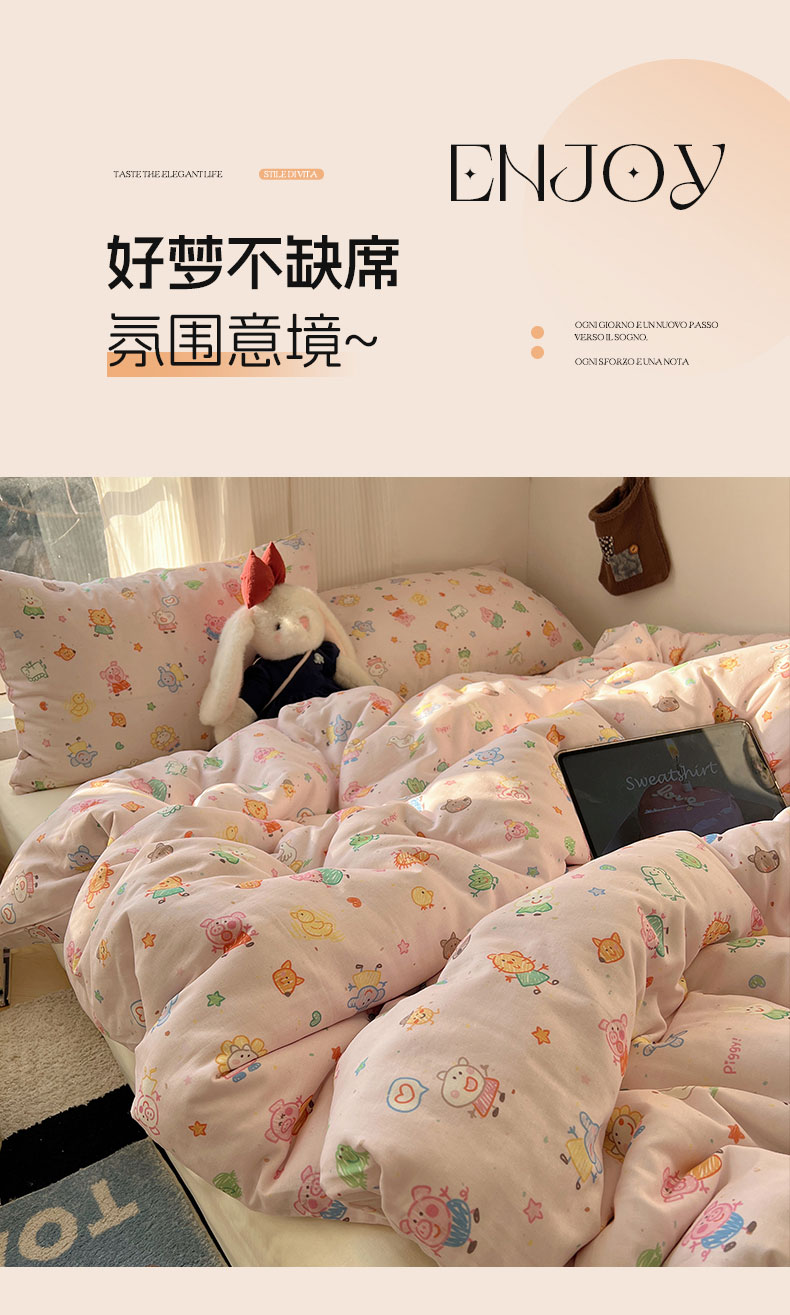 当前位置: 91家纺网 > 商品网购 > 床品套件 > 四件套 > 全棉普通四件套 > 六巷胡同 2026新款INS博主风卡通A类全棉双层纱四件套 双层纱-萌趣佩佩猪