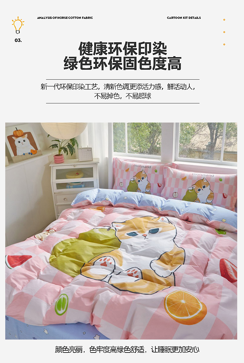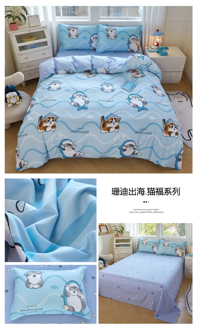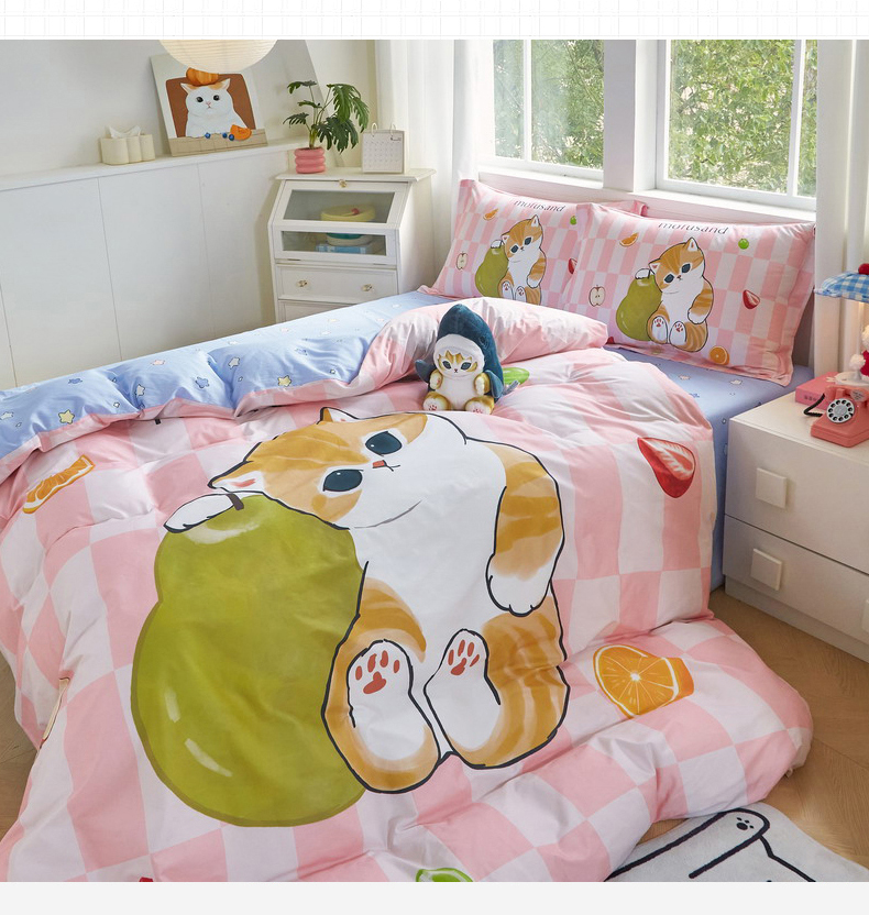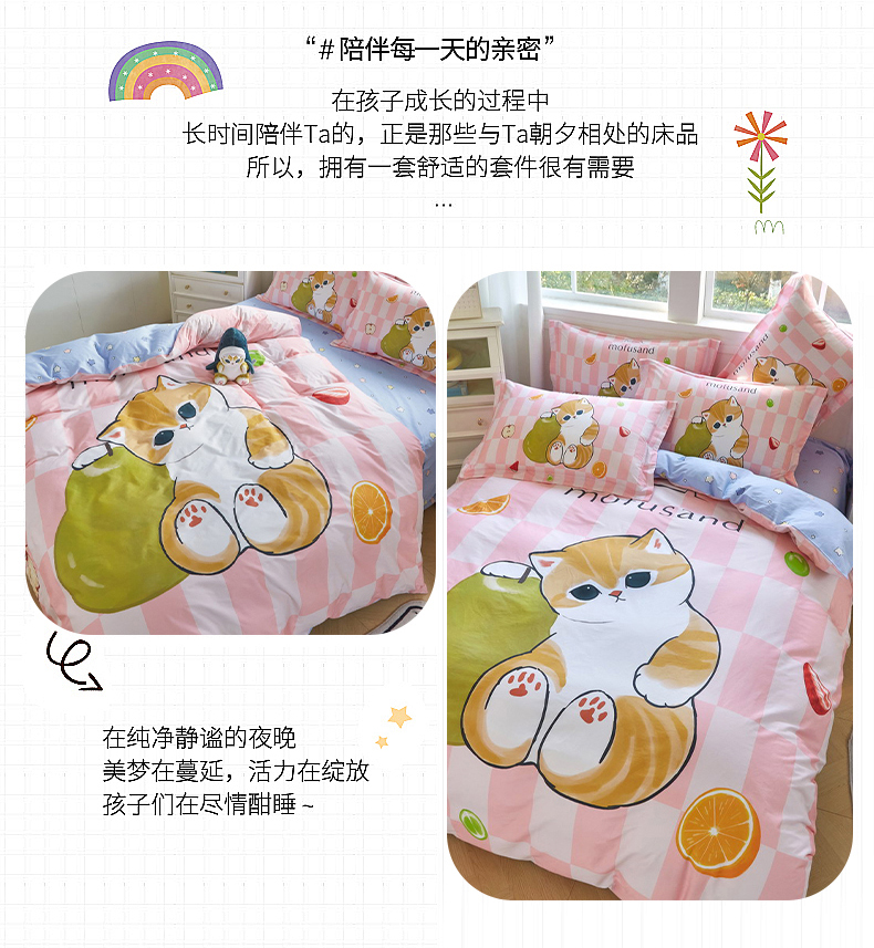 当前位置: 91家纺网 > 商品网购 > 床品套件 > 四件套 > 全棉普通四件套 > 蘭菲家纺 2026新款全棉大版鲨鱼猫套件-猫福系列四件套 水果珊迪-猫福.系列