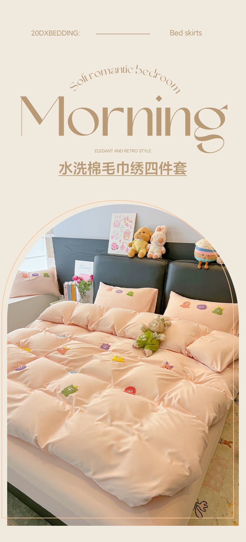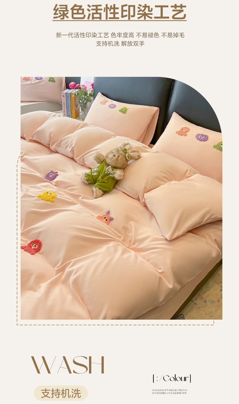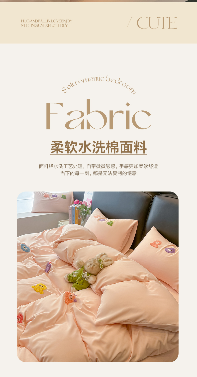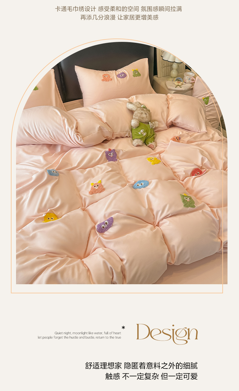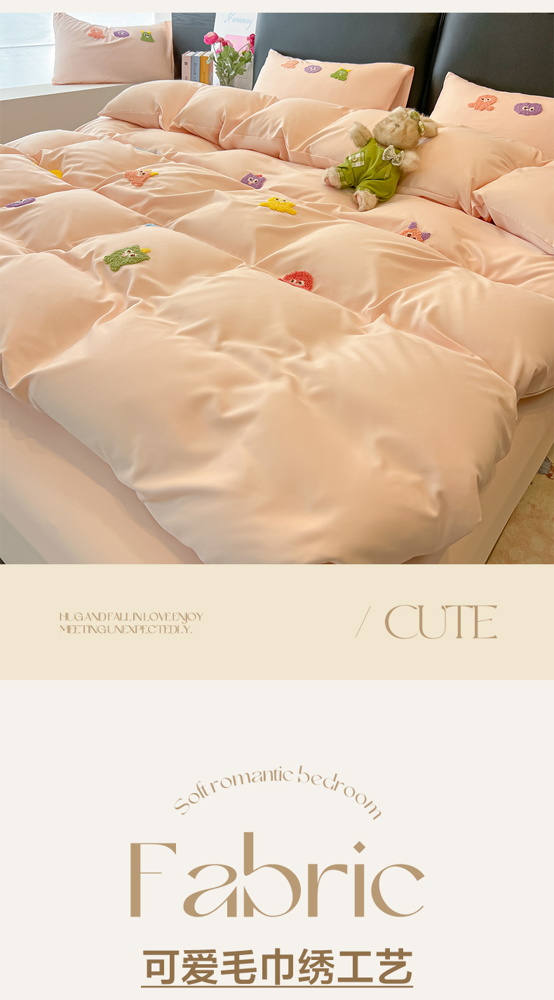 当前位置: 91家纺网 > 商品网购 > 床品套件 > 四件套 > 水洗棉四件套 > 韩巢家纺 2026新款水洗棉毛巾绣四件套 小精灵-浅粉