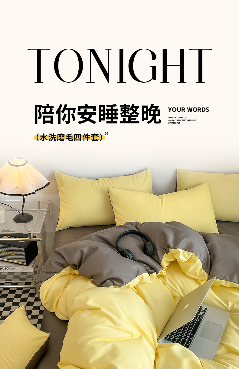• 91家纺网 家纺一手货源 找家纺 友承家纺 2026新款床上用品被套单件冬季纯水洗棉被罩学生宿舍单人150x200x230cm双人磨毛被单 奶油黄