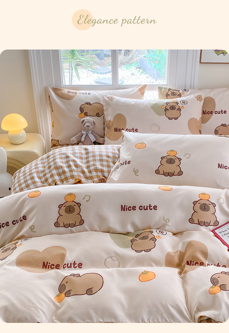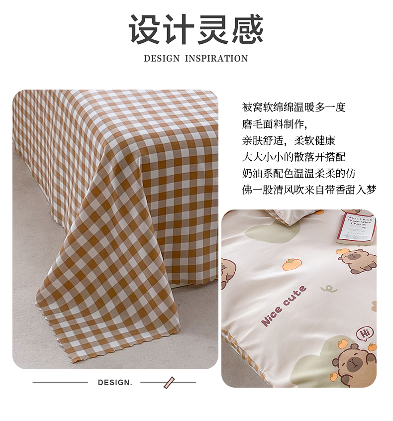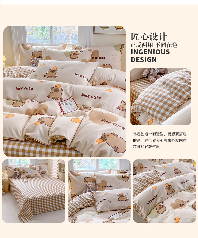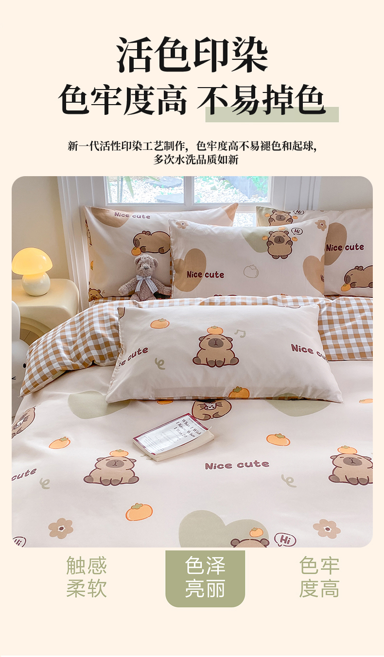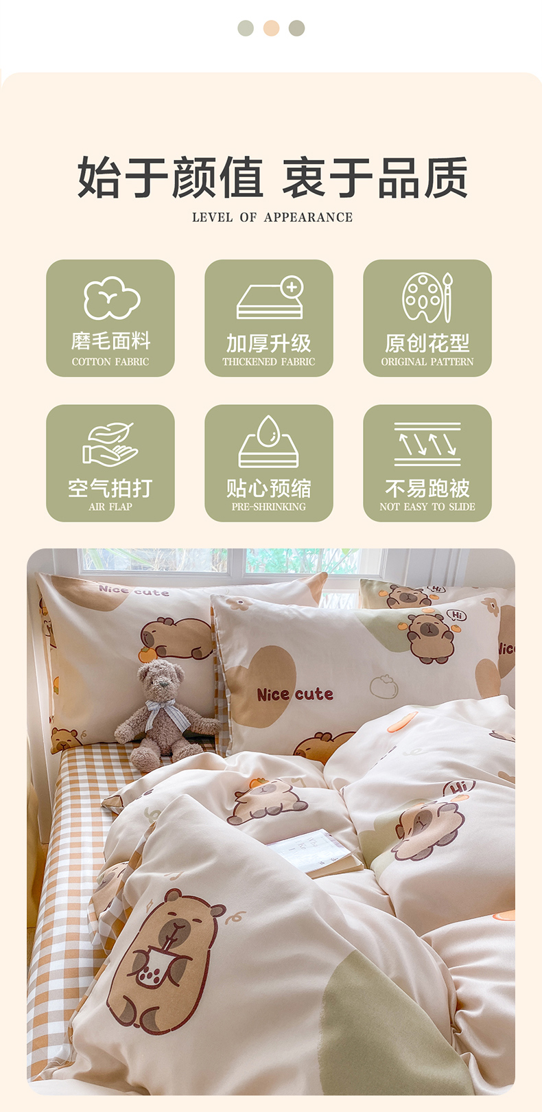 友承家纺 2026新款床上用品磨毛水洗棉四件套被单被套学生宿舍单人三件套被罩单件四季通用 萌萌