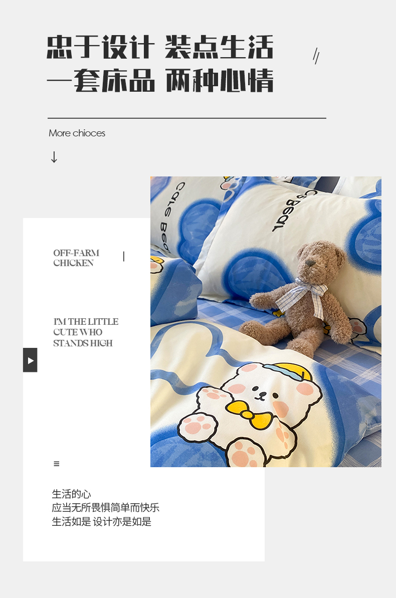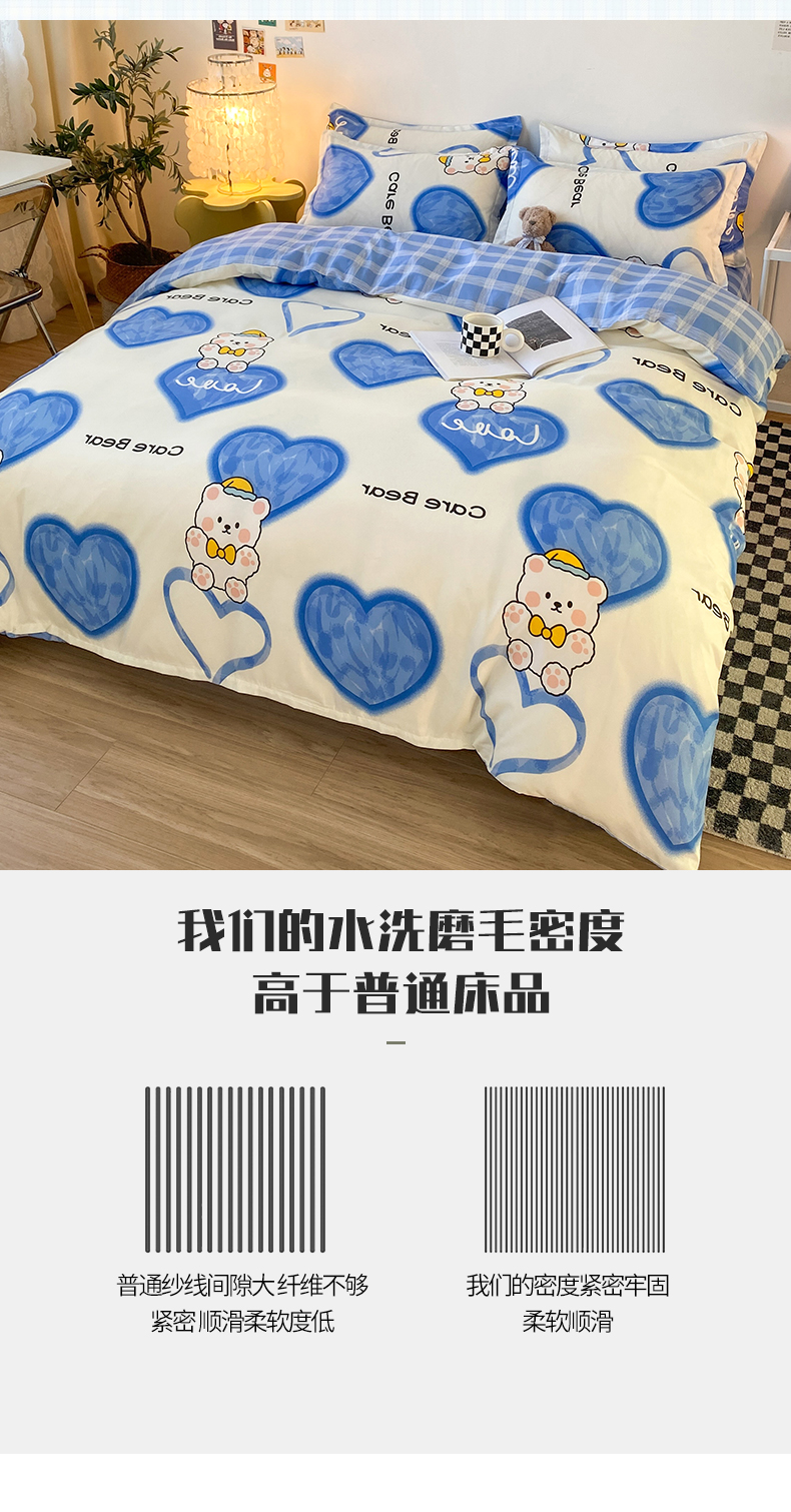商品名称:友承家纺 2026年新款床上用品学生宿舍套件亲肤磨毛单件被套150x180x220cm芦荟棉被罩200x230 爱心小熊