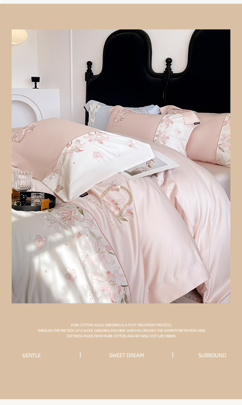 2026新款特供款A类长绒棉纯棉四件套100全棉少女心刺绣被套床单床笠床上用品 花若梦-颜粉