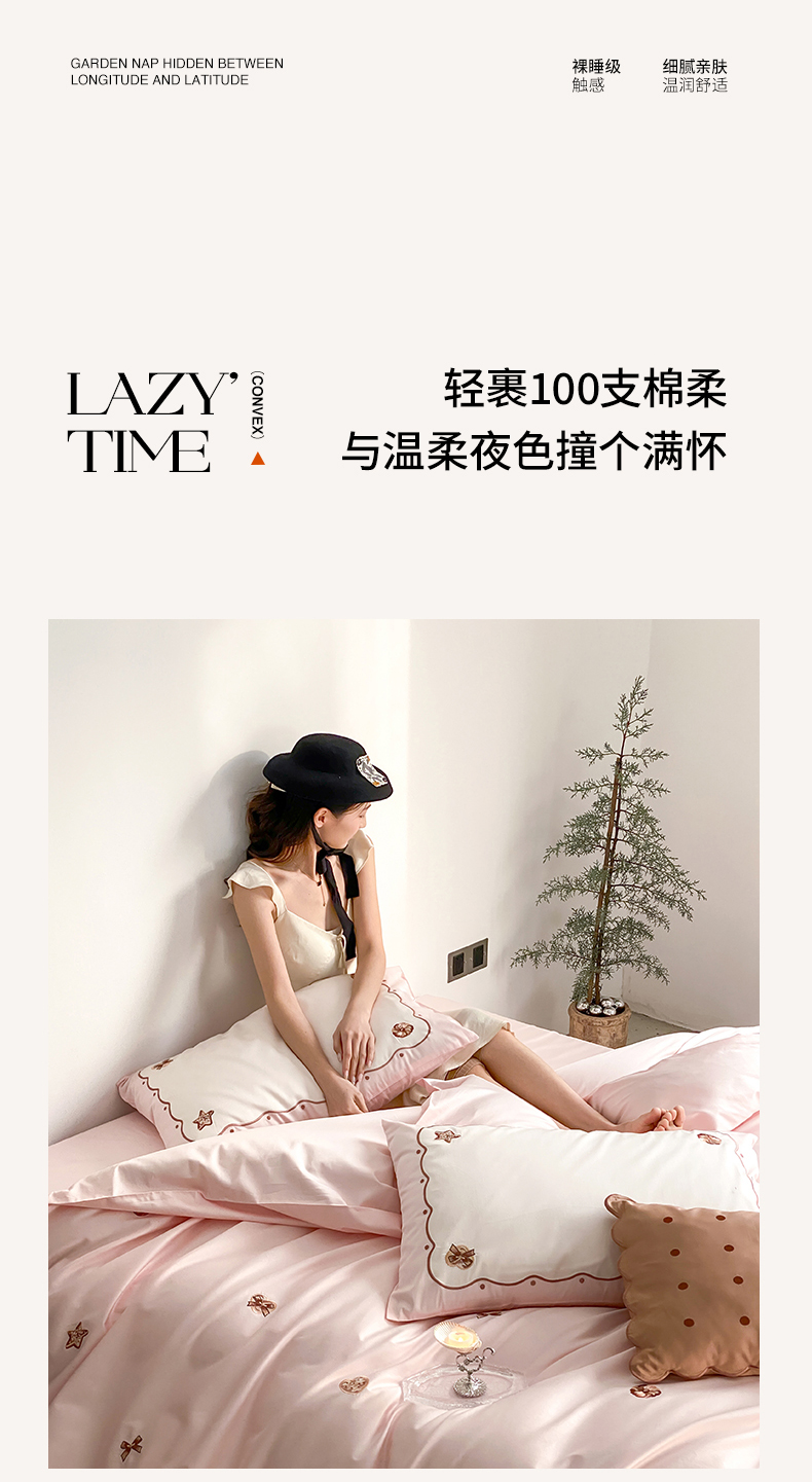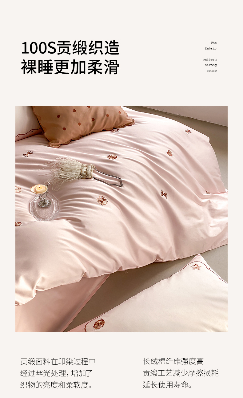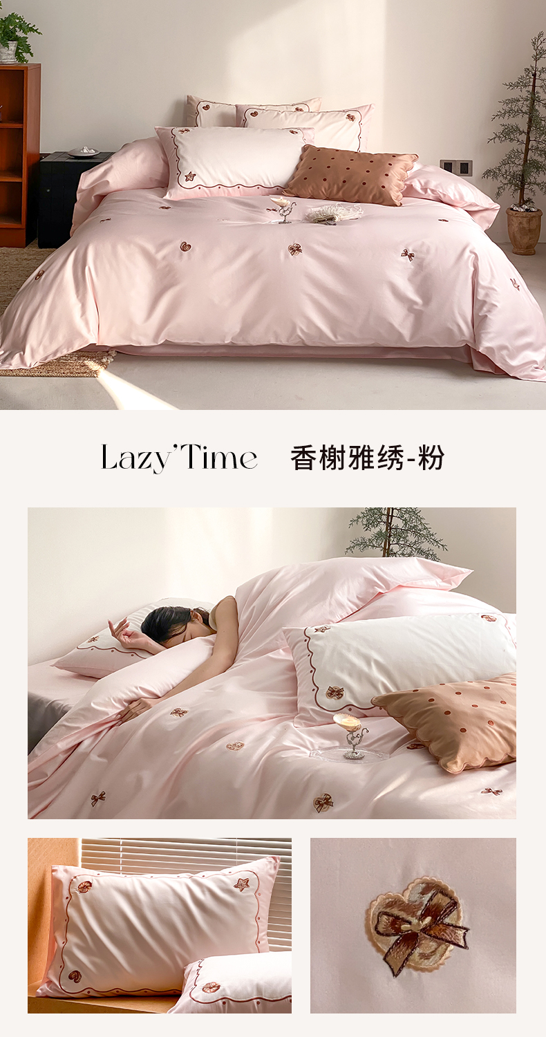 当前位置: 91家纺网 > 商品网购 > 床品套件 > 四件套 > 长绒棉四件套 > 极简 2026新款100s长绒棉刺绣四件套-香榭雅绣 香榭雅绣-粉