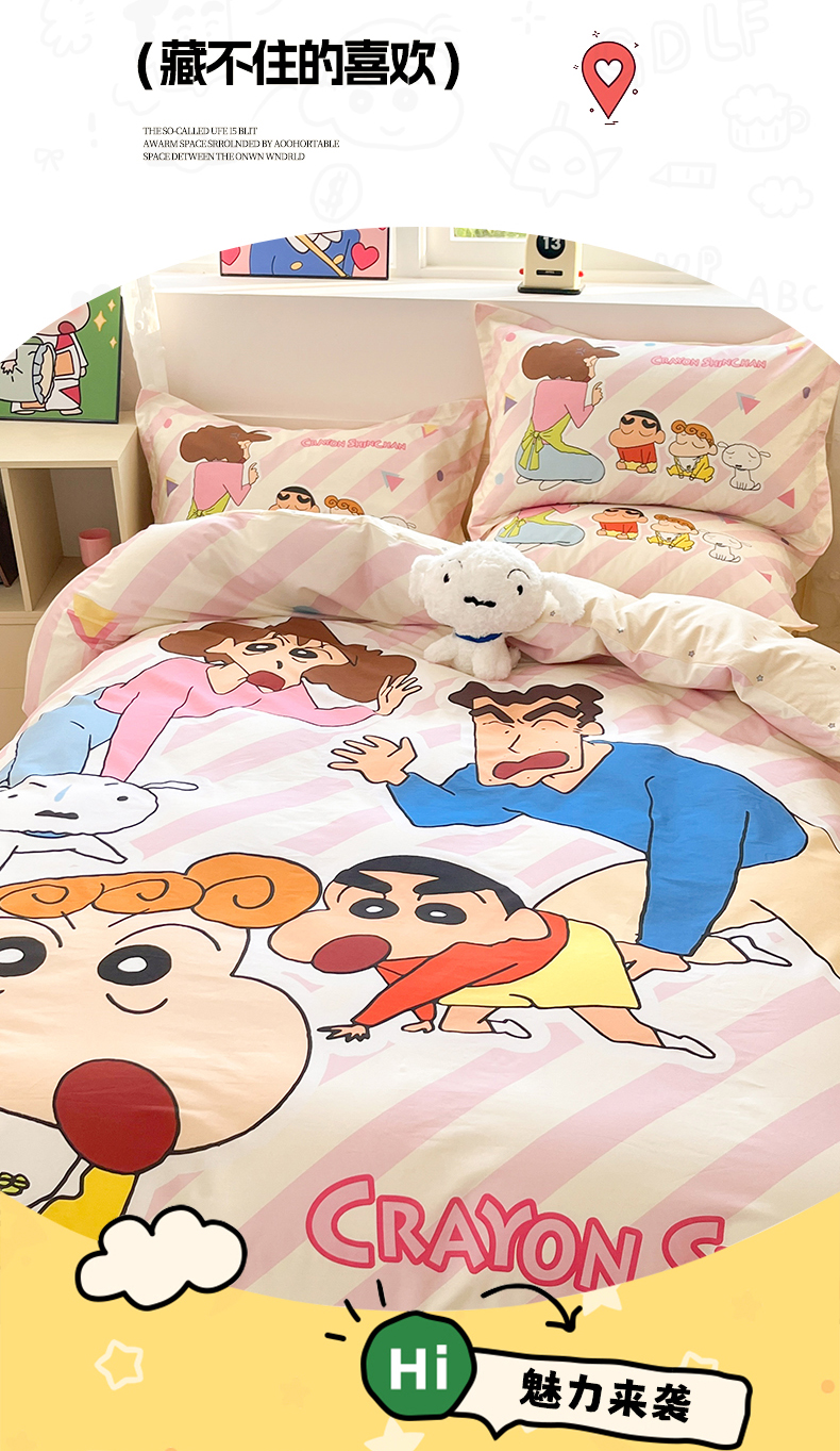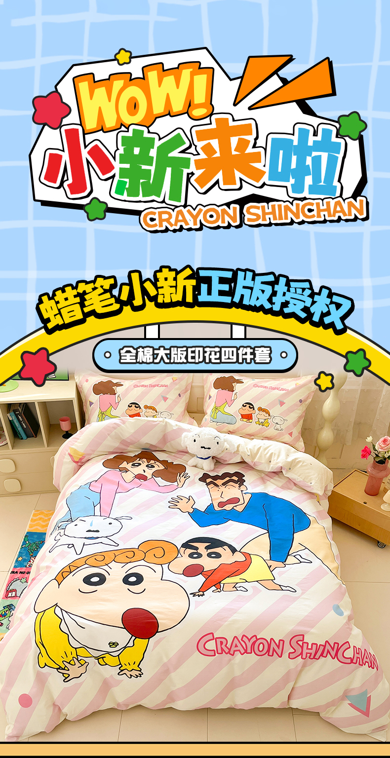 当前位置: 91家纺网 > 商品网购 > 床品套件 > 四件套 > 全棉普通四件套 > 博雅 2026新款蜡笔小新正版授权全棉纯棉大版四件套 大版-蜡笔小新家族