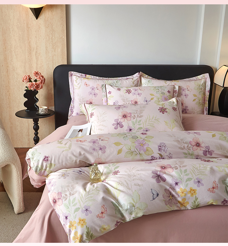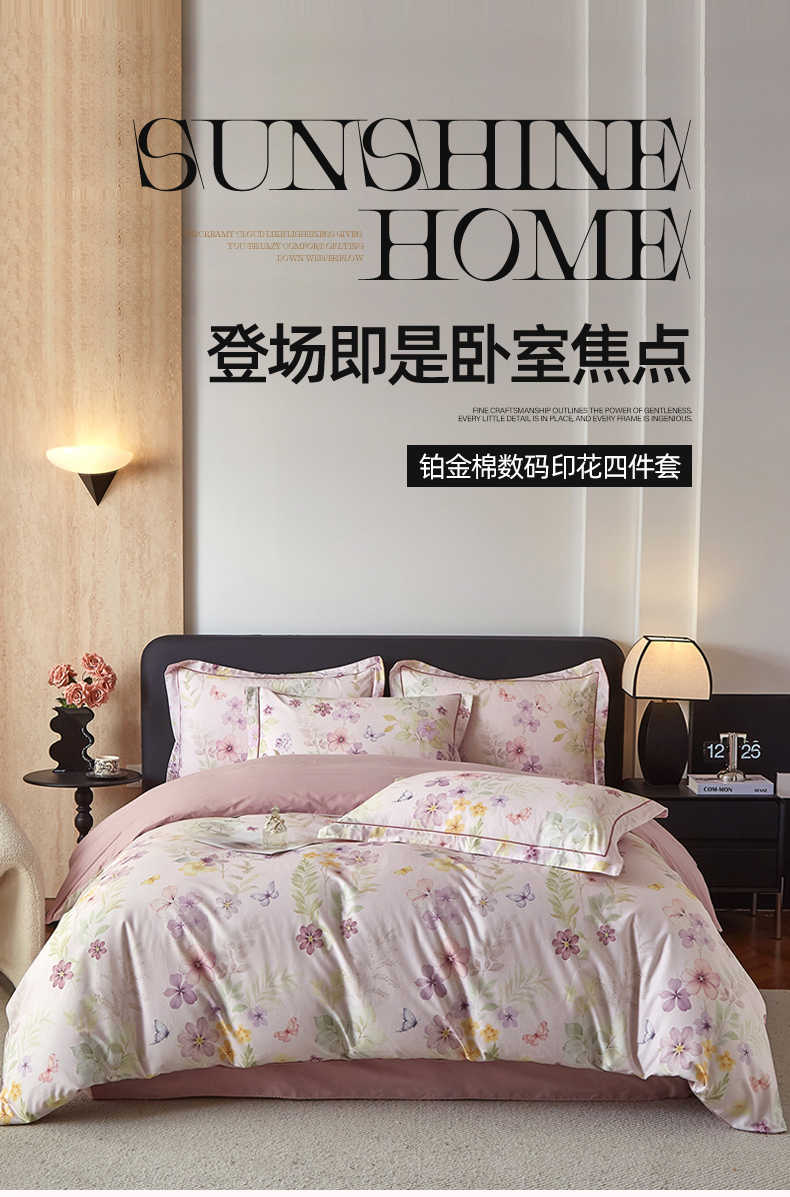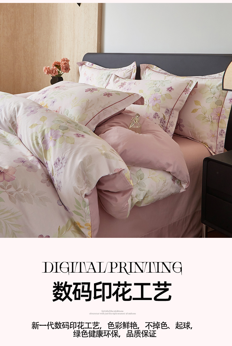 曼秀琳 2026新款铂金棉数码印花四件套(全棉133*76) 可提供买家秀图片 林间织梦-粉