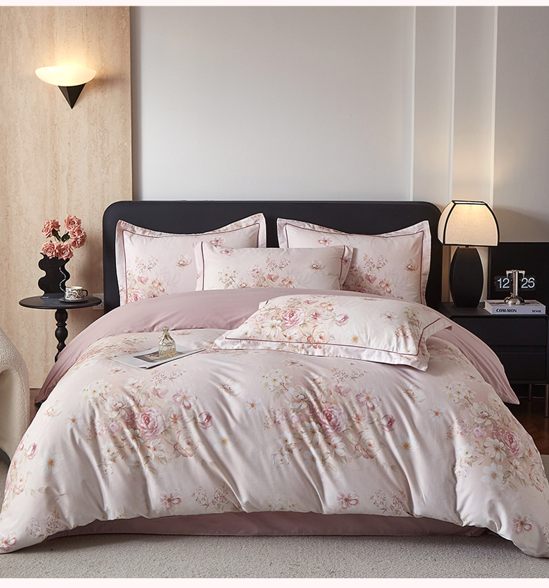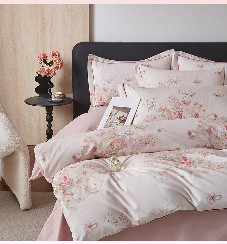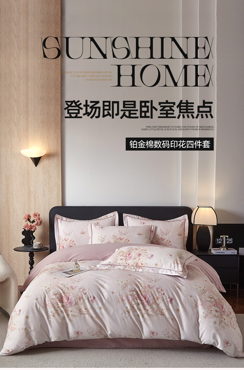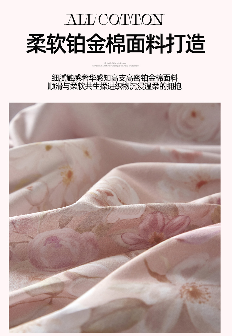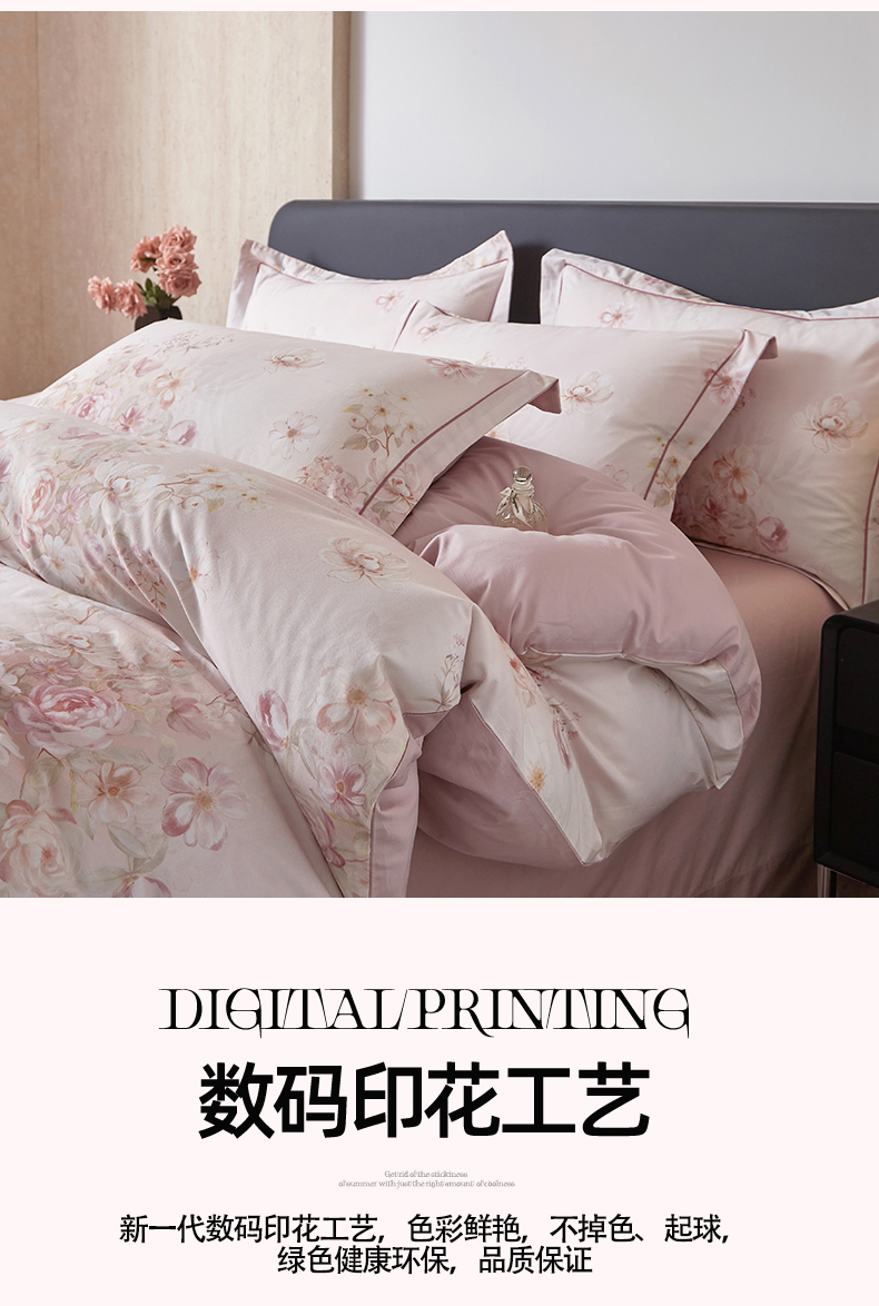 曼秀琳 2026新款铂金棉数码印花四件套(全棉133*76) 可提供买家秀图片 春色如许-粉