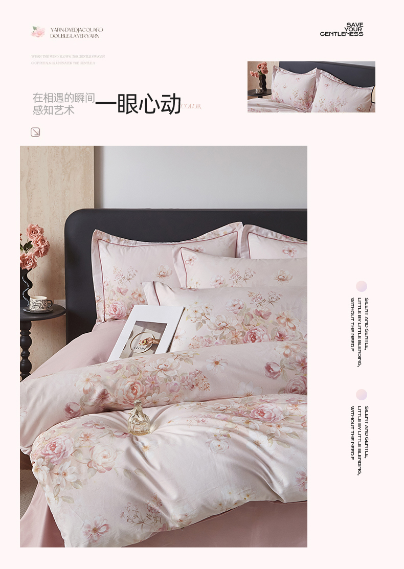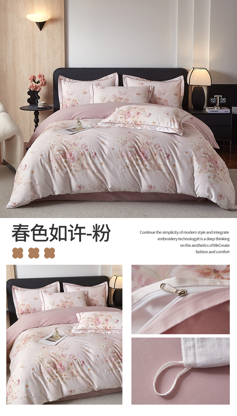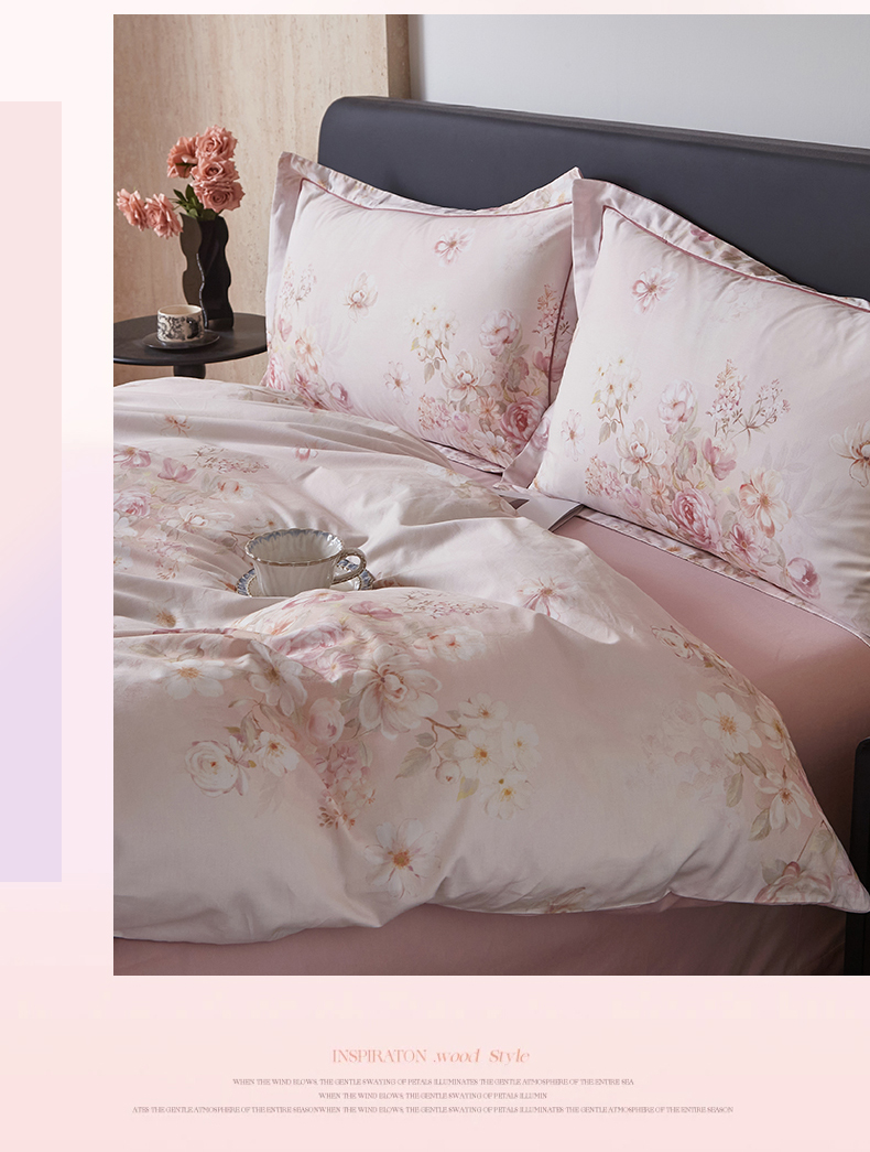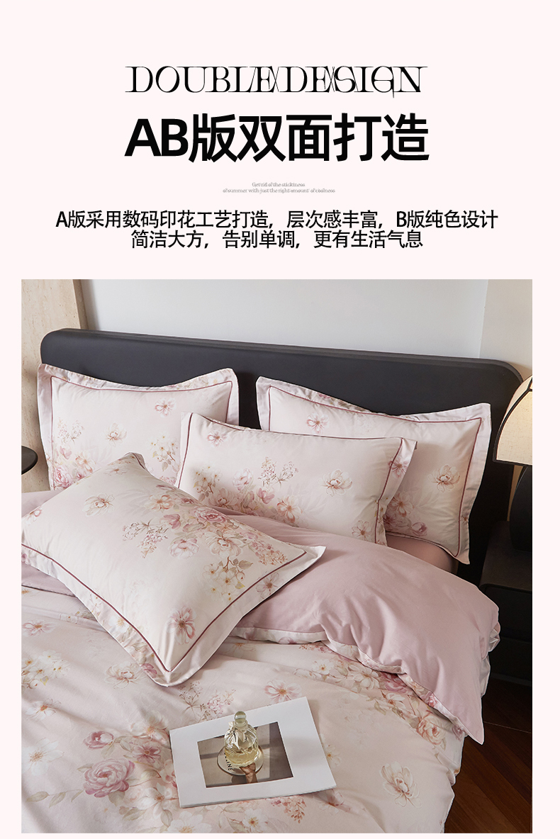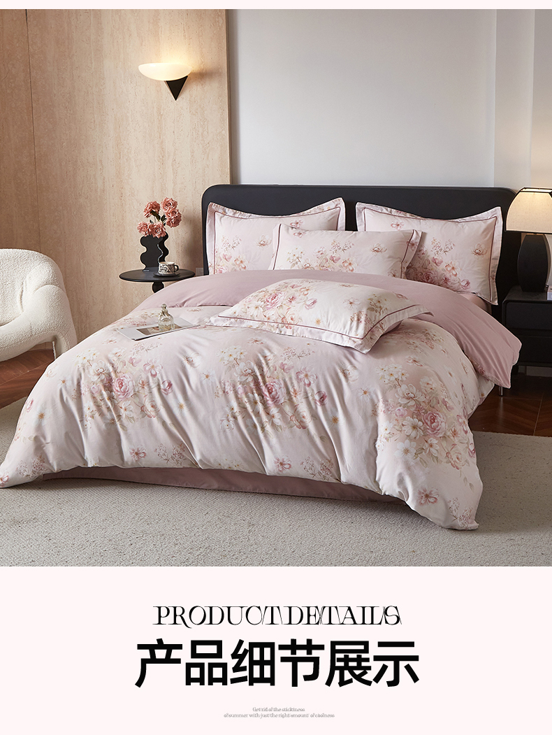 曼秀琳 2026新款铂金棉数码印花四件套(全棉133*76) 可提供买家秀图片 春色如许-粉