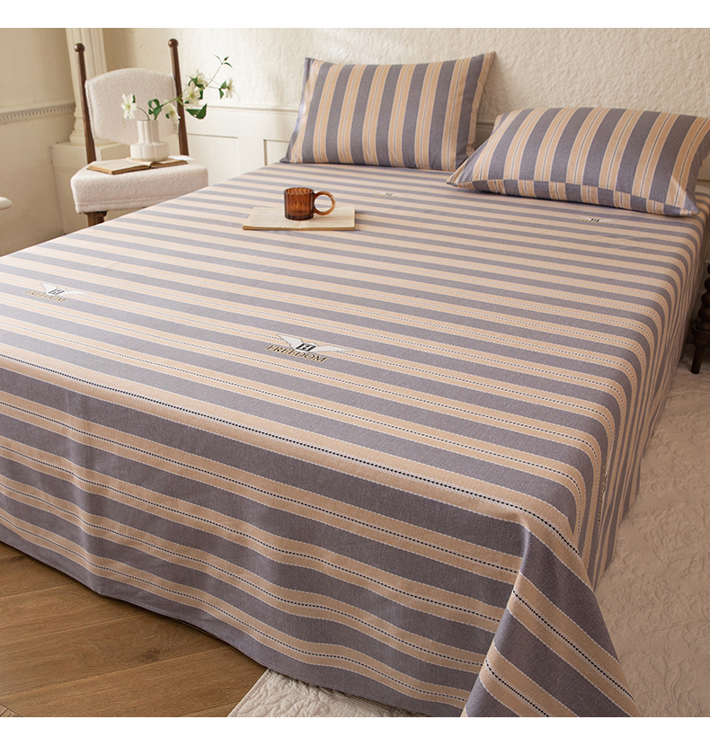 八十八家纺 2026新款无印风全棉纯棉斜纹条格单床单床单单件单品床单 木本