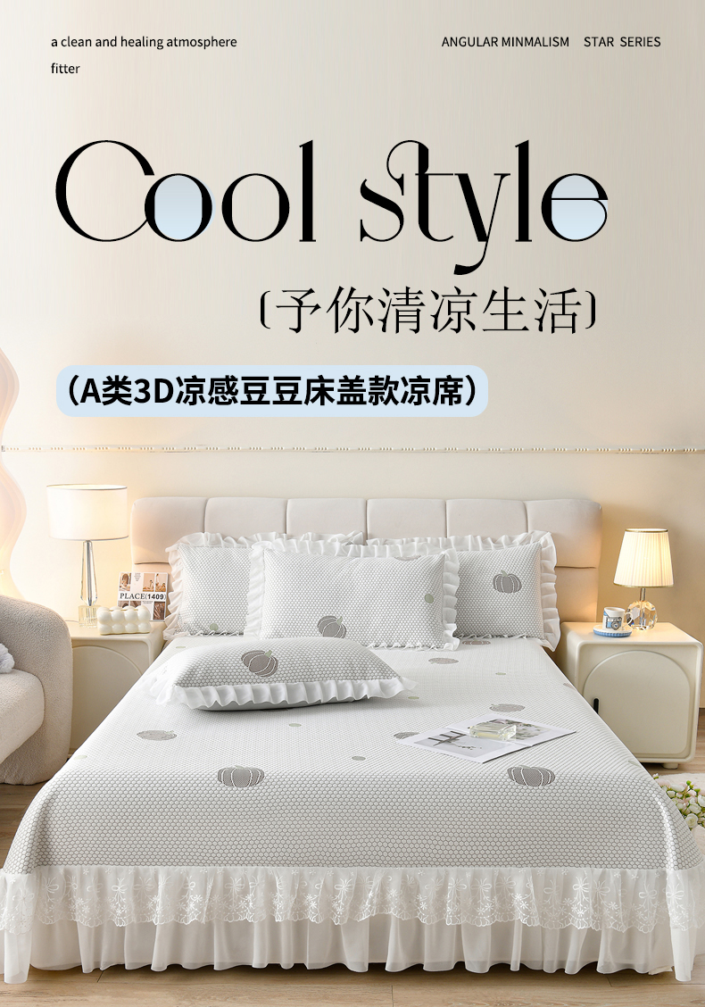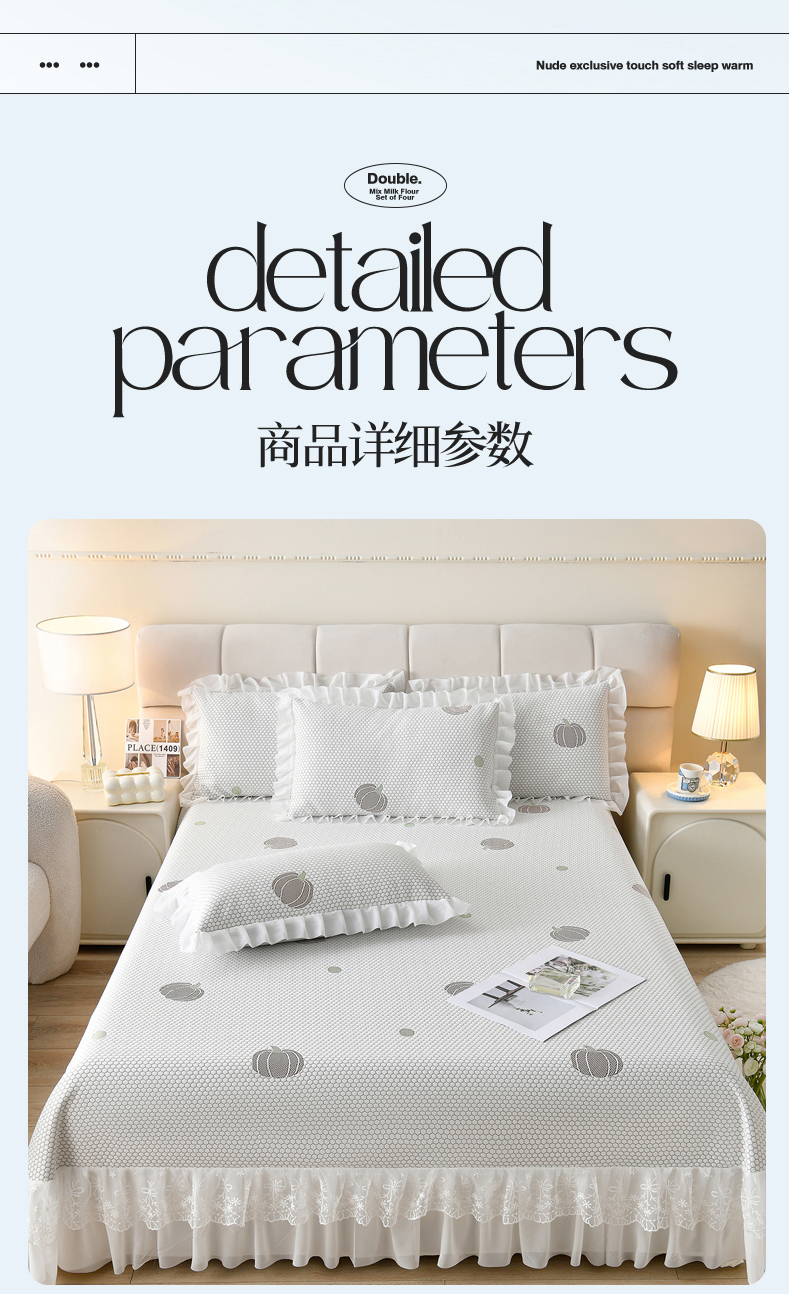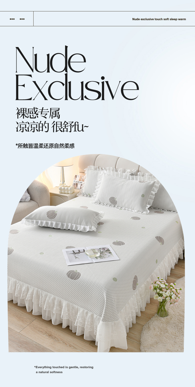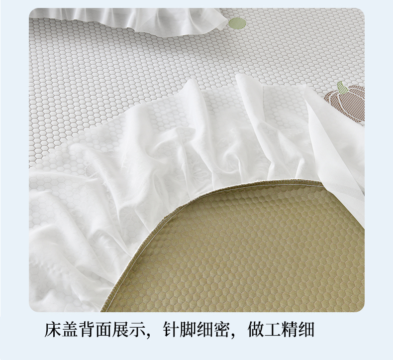 当前位置: 91家纺网 > 商品网购 > 床上用品 > 凉席 > 优家居工厂店 A类2026新款凉感豆豆提花凉席床裙款床盖三件套高档蕾丝花边可机洗水洗 盛夏-南瓜黄