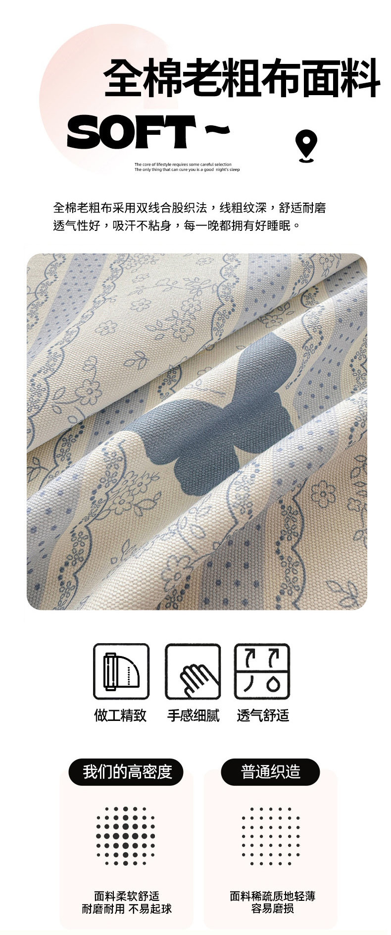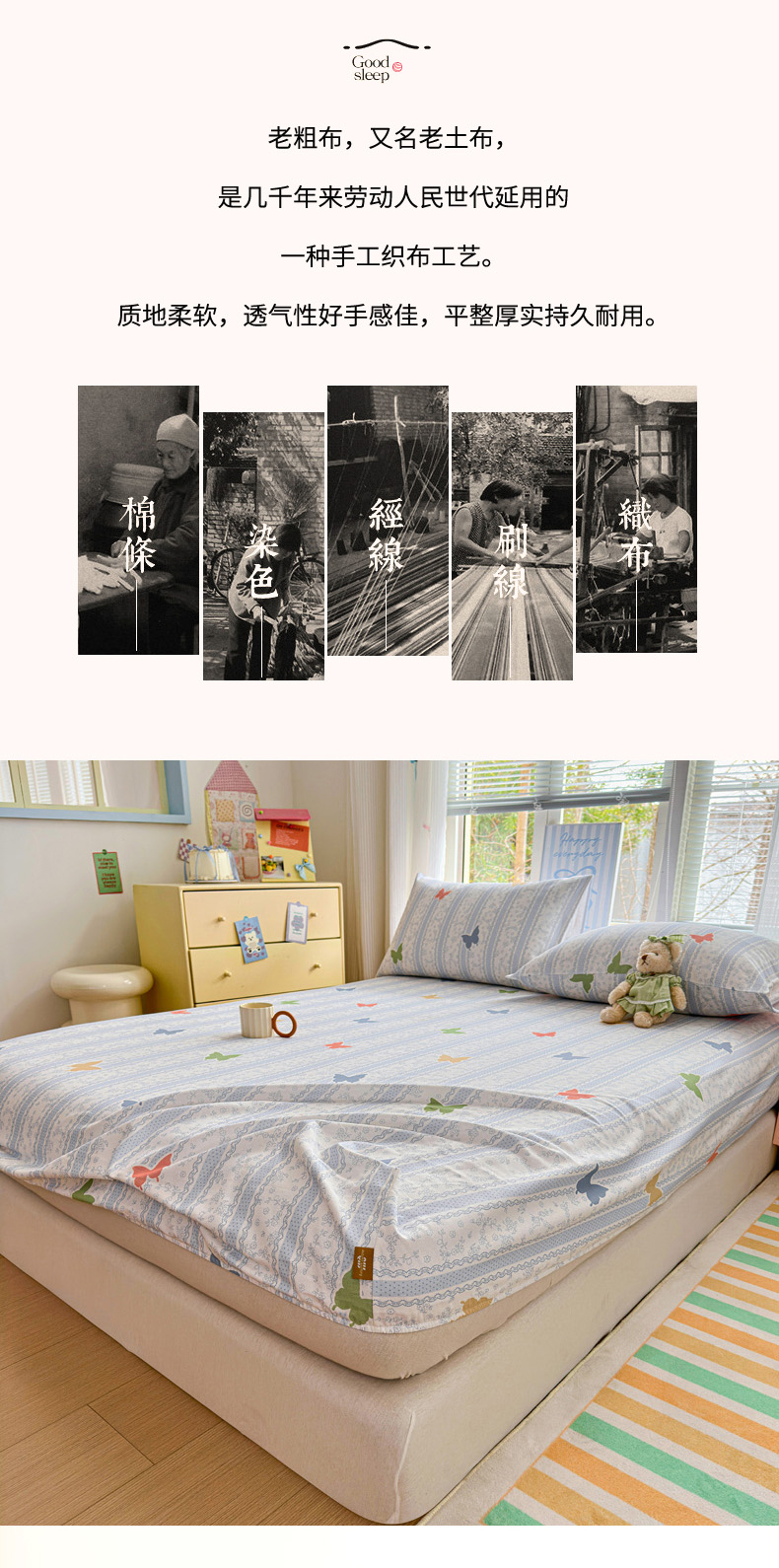 商品名称:女子家纺 2026新款全棉老粗布床笠 简爱