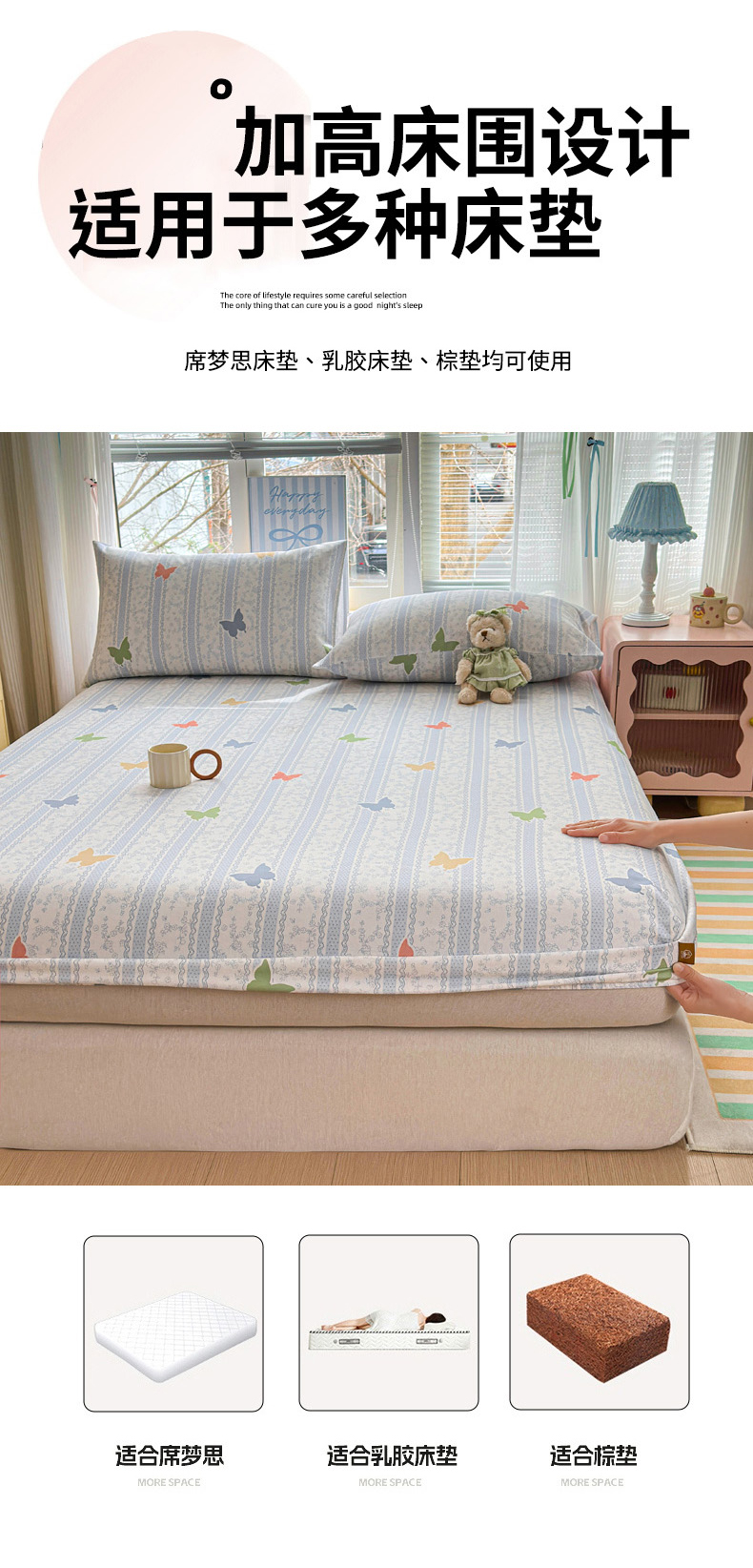 (总)女子家纺 2026春夏新款简爱A类夹棉防水床笠三件套水洗棉7A抗菌磨毛床单保护套,简爱-月光白,简爱-黛蓝,简爱-淡水蓝,简爱-密合粉,简爱-暮云灰,简爱-奶咖,简爱-清雅绿,简爱-深空灰