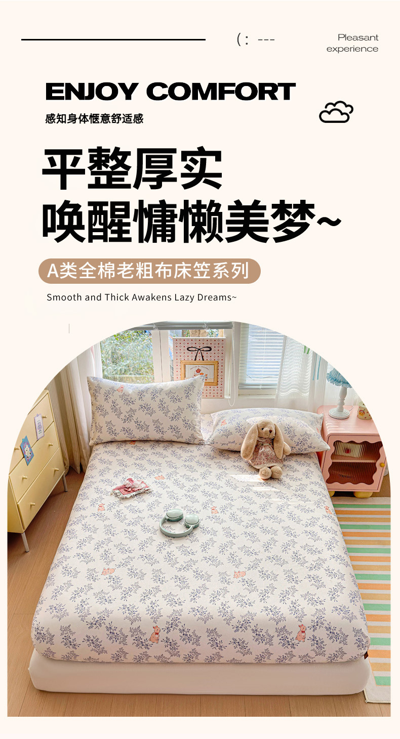 女子家纺 2026新款全棉老粗布床笠 醒春