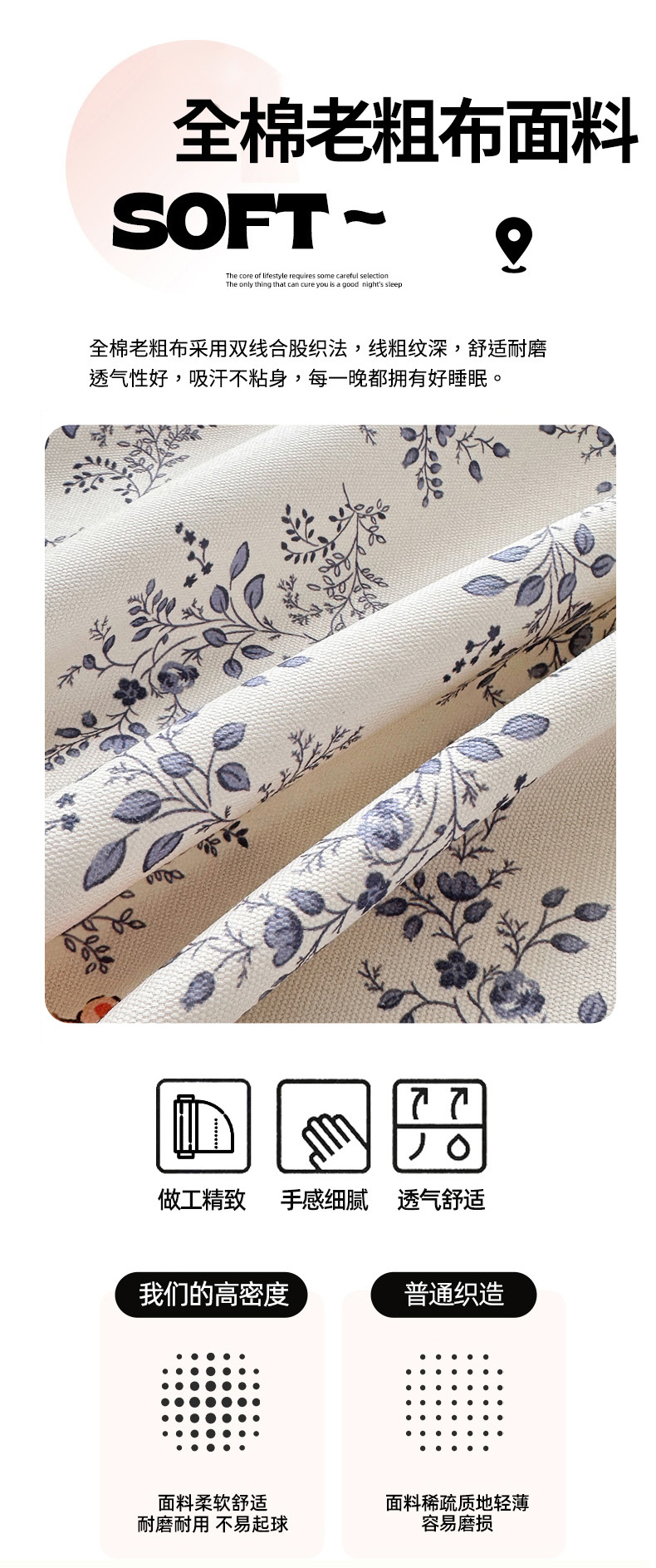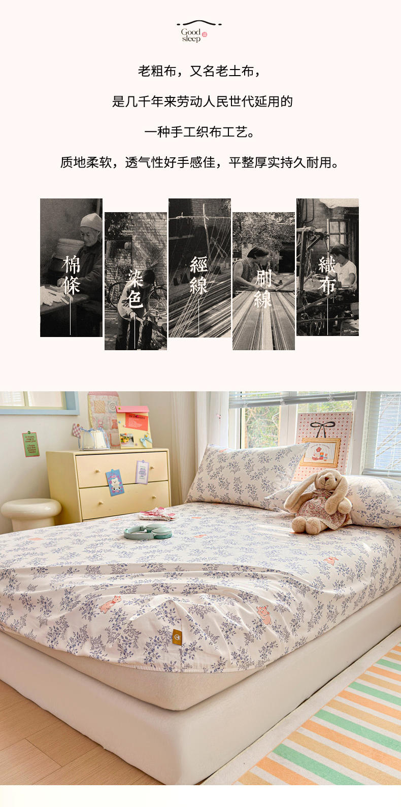 商品名称:女子家纺 2026新款全棉老粗布床笠 醒春