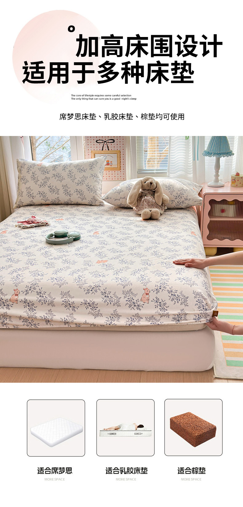 (总)女子家纺 2026春夏新款简爱A类夹棉防水床笠三件套水洗棉7A抗菌磨毛床单保护套,简爱-月光白,简爱-黛蓝,简爱-淡水蓝,简爱-密合粉,简爱-暮云灰,简爱-奶咖,简爱-清雅绿,简爱-深空灰