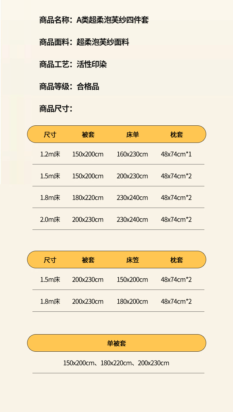 【床笠款】1.8四件套-被套200x230 | ¥58.00 |
