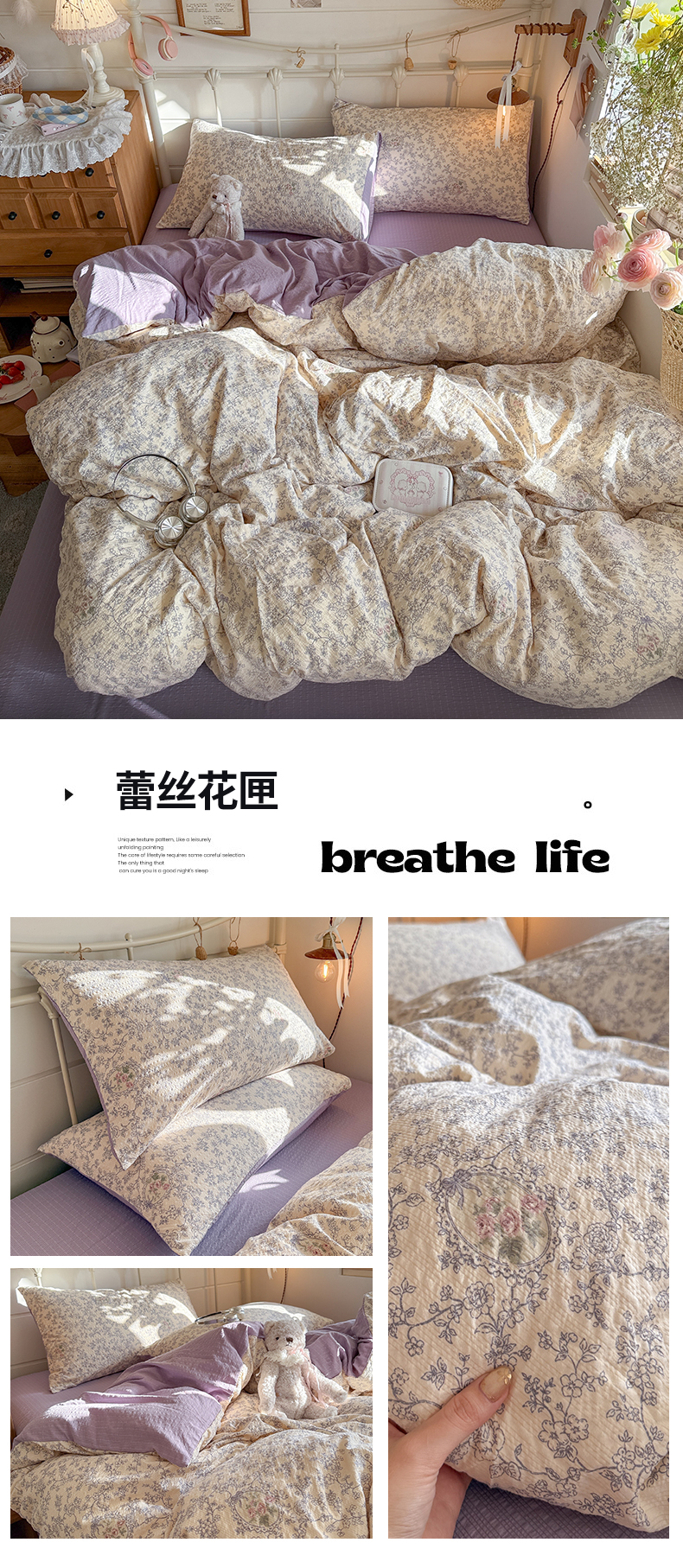 当前位置: 91家纺网 > 商品网购 > 床品套件 > 四件套 > 其它四件套 > 初念 2026新款A类高品质110克超柔泡芙纱四件套 蕾丝花匣
