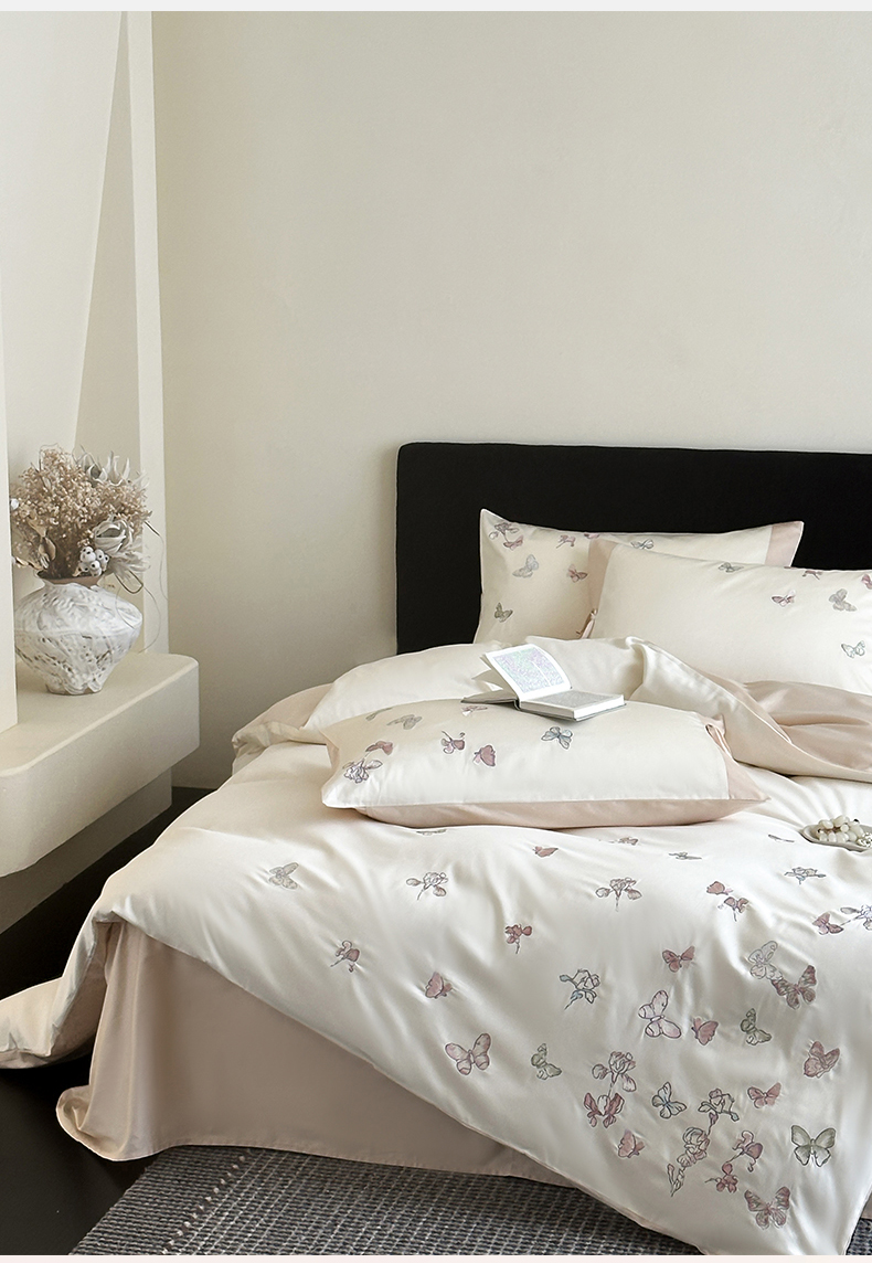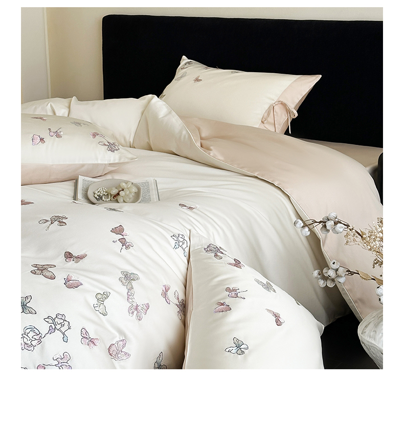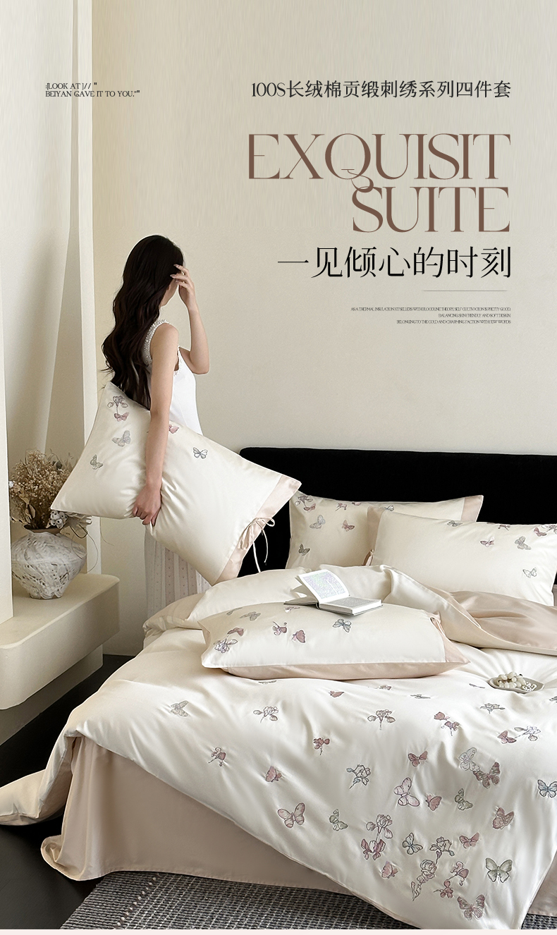 当前位置: 91家纺网 > 商品网购 > 床品套件 > 四件套 > 长绒棉四件套 > 蓝米卡夫 2026春季新款-100S长绒棉贡缎刺绣系列四件套-阿勒泰福蝶(礼盒) 阿勒泰福蝶-芝士奶茶