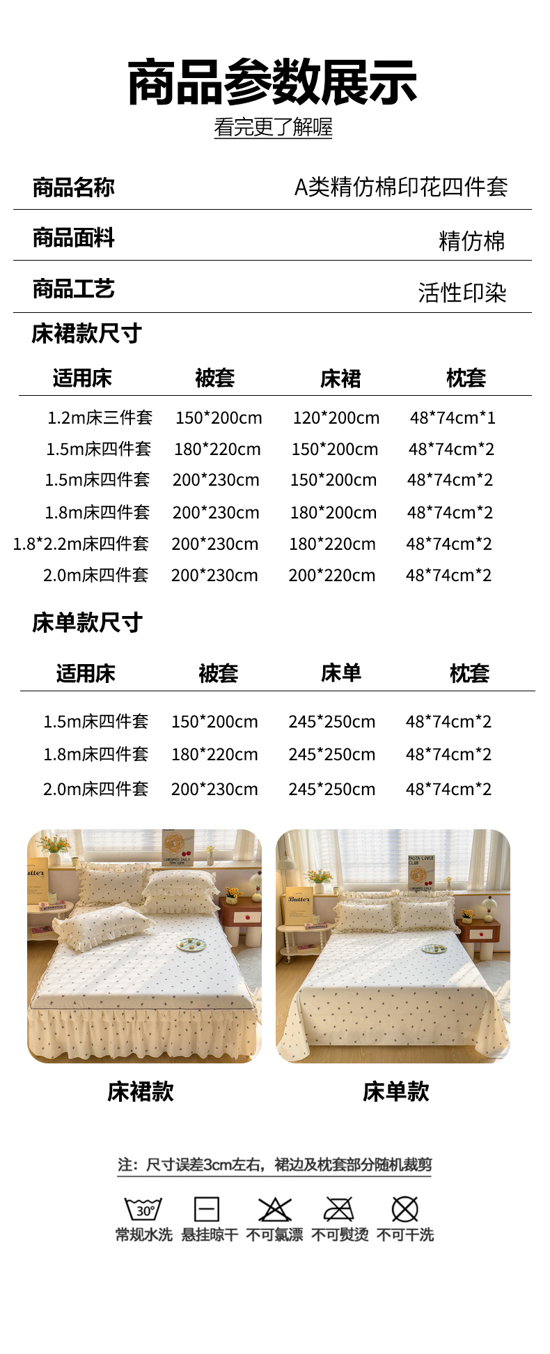 【床裙款】1.2x2.0三件套-被套150x200 | ¥52.00 |