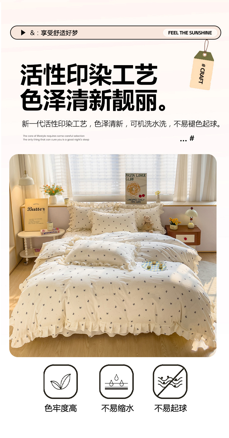 当前位置: 91家纺网 > 商品网购 > 床品套件 > 四件套 > 化纤普通四件套 > 优家居 2026新款精仿棉床裙四件套水洗棉韩版公主风花边床裙单被套直播外贸定制 情人节