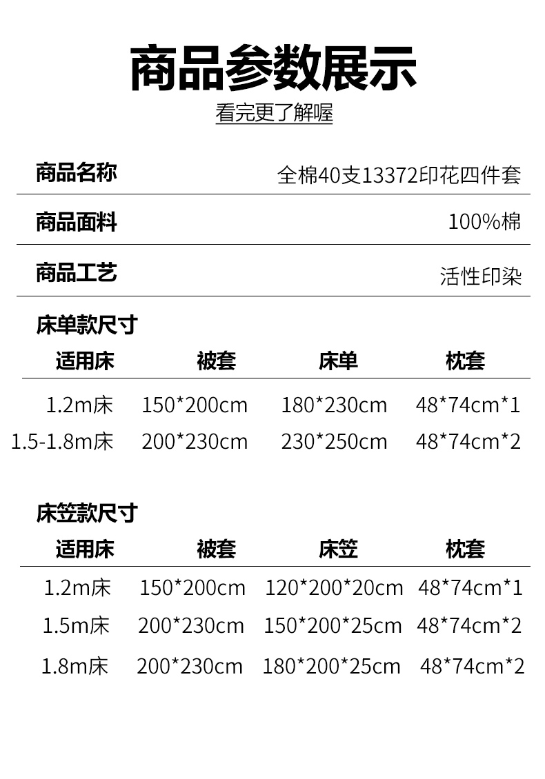 【床笠款】1.5四件套-被套200x230 | ¥125.00 |